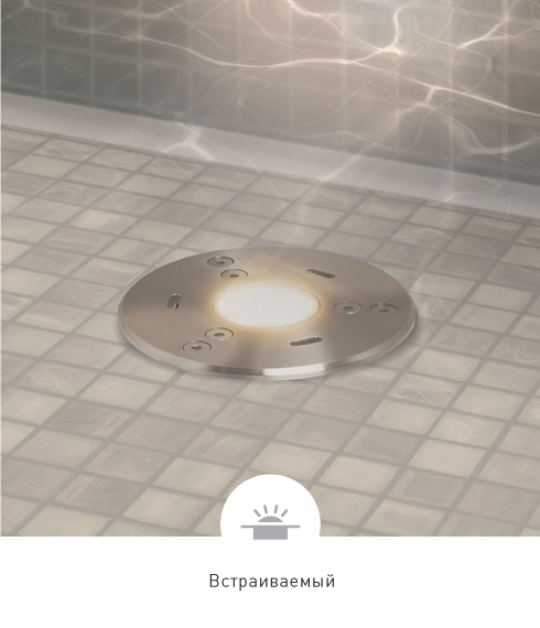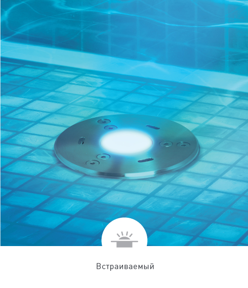 Подводные светильники с герметичным корпусом (IP68) из нержавеющей стали марки AISI 316, которая обладает высокой устойчивостью к коррозии и агрессивной внешней среде. Идеально подходят для использования в бассейнах, декоративных водоемах и фонтанах. Максимальная глубина погружения — до 2 м.