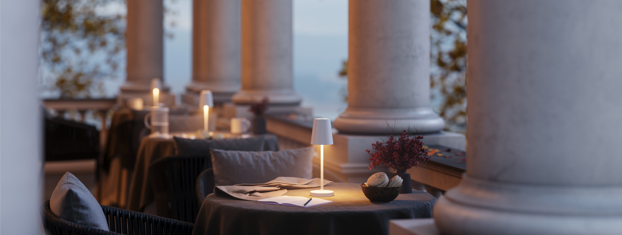 Светодиодный светильник DAISY — уютное освещение на рабочем столе или в зоне отдыха. Сенсорное управление позволяет легко регулировать яркость и цвет свечения в диапазоне 2200–3000 K, создавая комфортную атмосферу для чтения, вечернего досуга или ужина в ресторане. Степень защиты IP54 предотвращает попадание капель воды и пыли, позволяя использовать светильник как в помещениях, так и под открытым небом, например, на веранде.