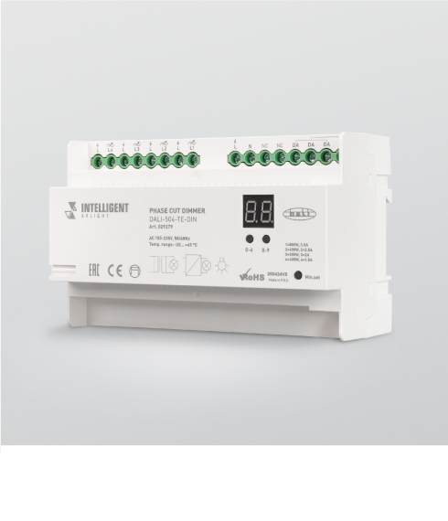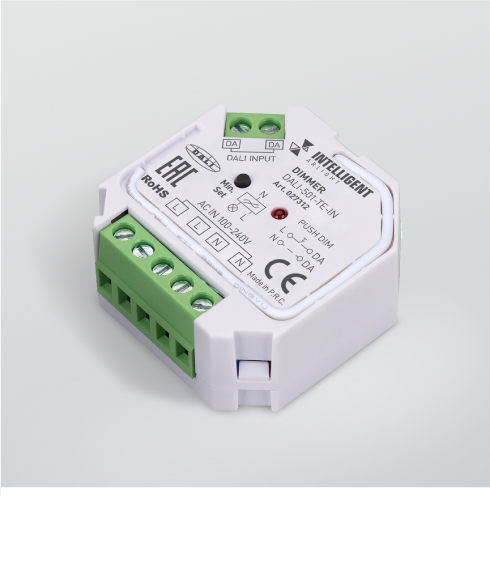 Диммеры, работающие по стандарту DALI, предназначены для управления источниками света с напряжением питания AC 230 В, в том числе диммируемыми светодиодными лампами и светильниками за счет отсечки переднего либо заднего фронта фазы сетевого напряжения методом TRIAC.