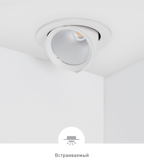 Узкий угол излучения света 38° для направленного акцентного освещения.