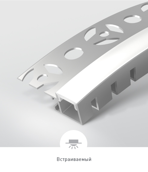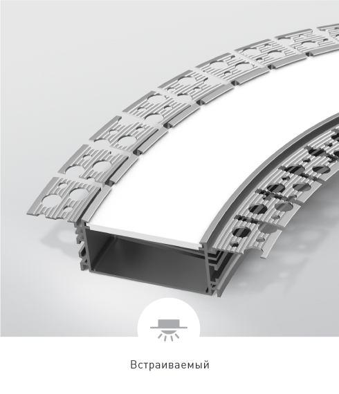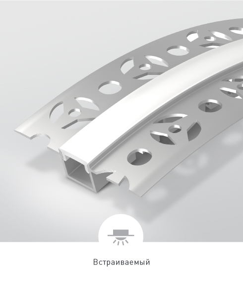 Гибкие алюминиевые профили FANTOM BENT со скрытым фланцем предназначены для создания встроенных линий света в конструкциях из ГКЛ.