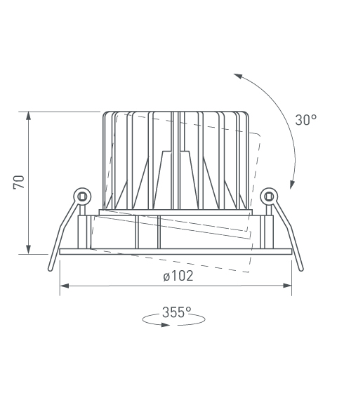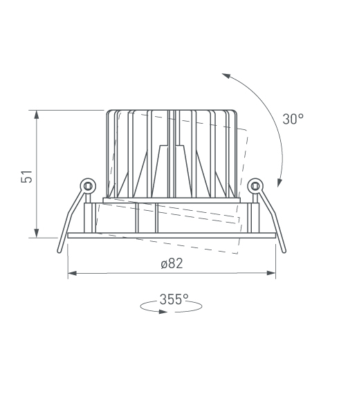 Световой модуль можно повернуть в любую сторону: угол вращения относительно вертикали равен 355°, а максимальный угол наклона от горизонтали — 30°. Это позволит быстро менять направление светового луча. Поворотная функция расширяет сферу применения и делает световые решения более разнообразными.