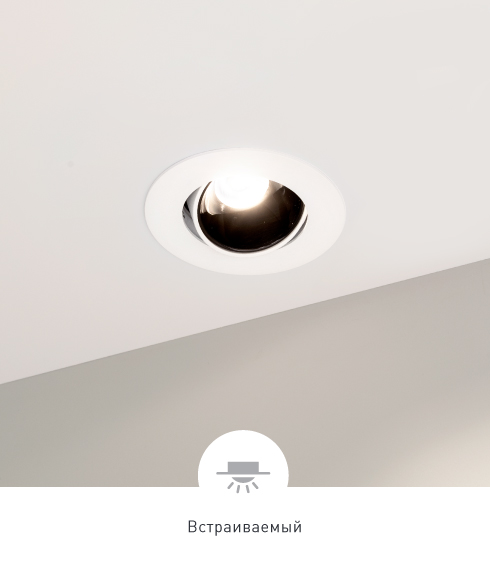 Компактные встраиваемые светильники-даунлайты. Светильники небольшого диаметра подойдут для установки в квартирах, офисах, магазинах, ресторанах и отелях; более крупные можно использовать в помещениях с высокими потолками, например, в торговых центрах, супермаркетах, холлах, автосалонах.