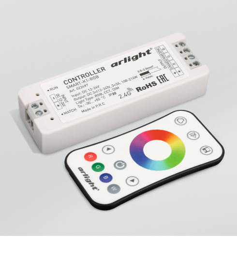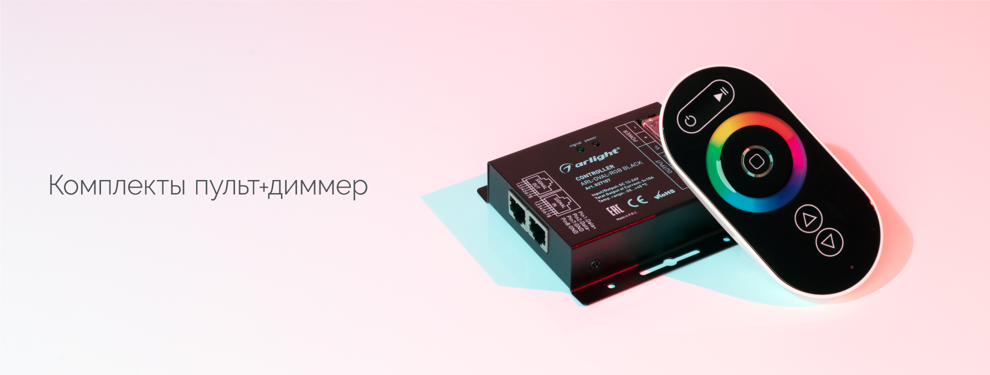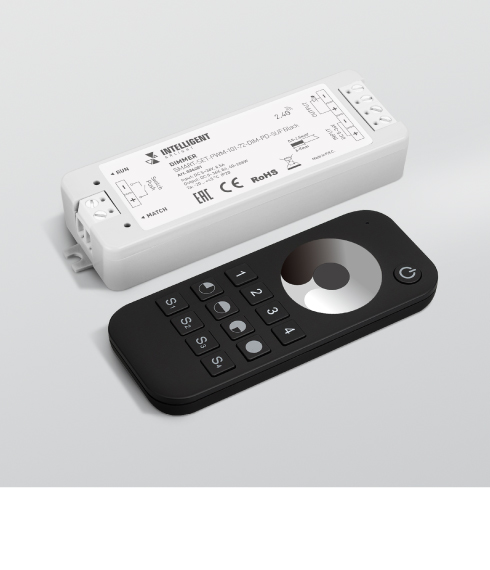 Комплект, состоящий из диммера и совместимого пульта управления, позволит легко и удобно регулировать яркость освещения и осуществлять включение и выключение светодиодной ленты и других источников света. Компактные размеры и эргономичный дизайн устройств дают широкий выбор вариантов установки.