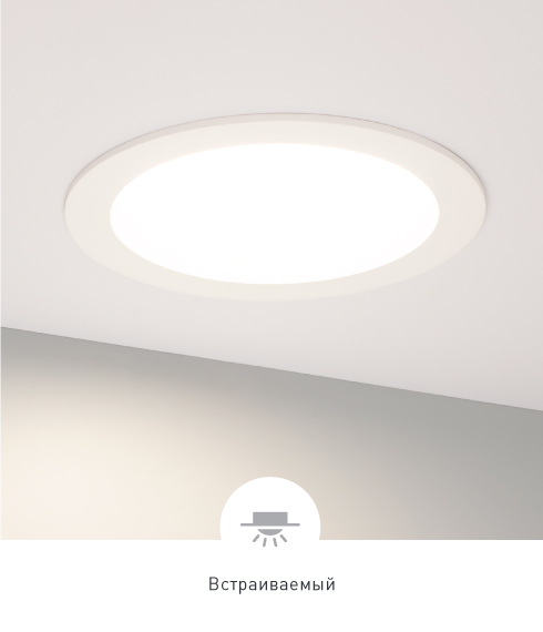 Высокий индекс цветопередачи (CRI>90) позволяет сохранить естественную цветовую гамму окружающих предметов. Благодаря матовому углубленному рассеивателю создается мягкое равномерное свечение без слепящего эффекта.