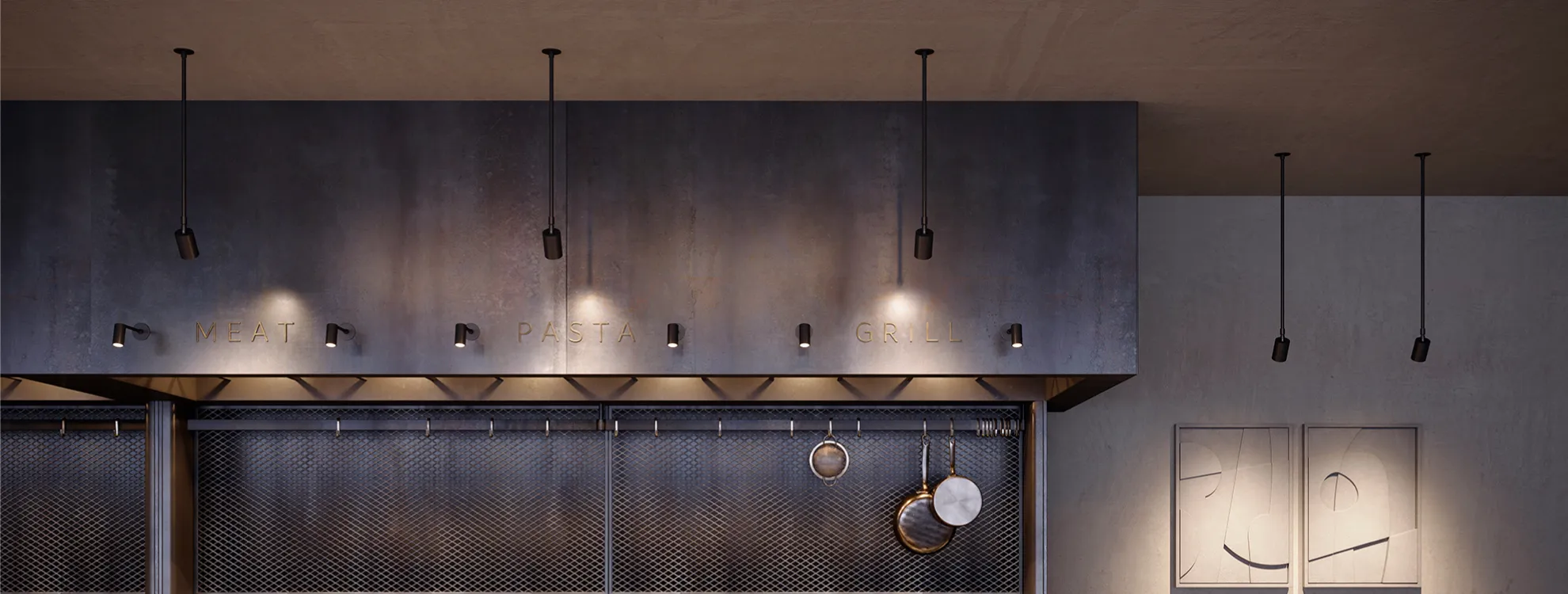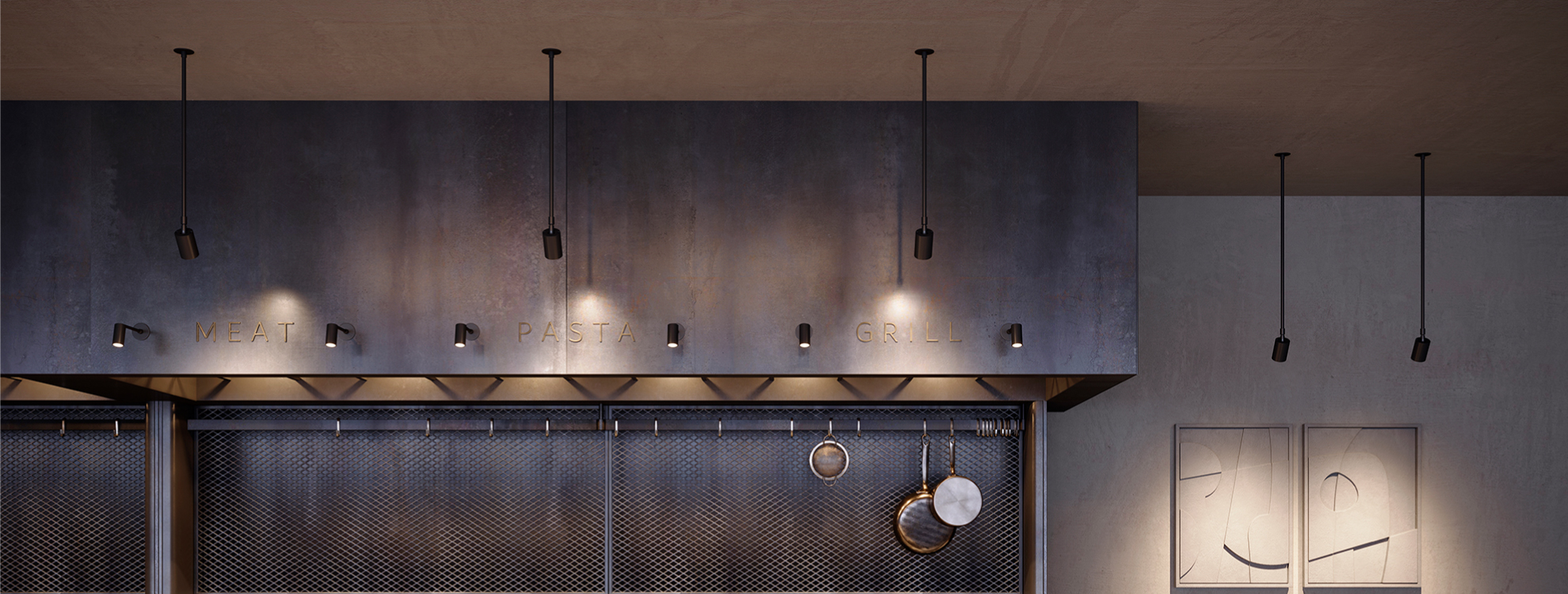Светильники PERISCOPE на жестком подвесе привлекут внимание к самым интересным деталям вашего интерьера.