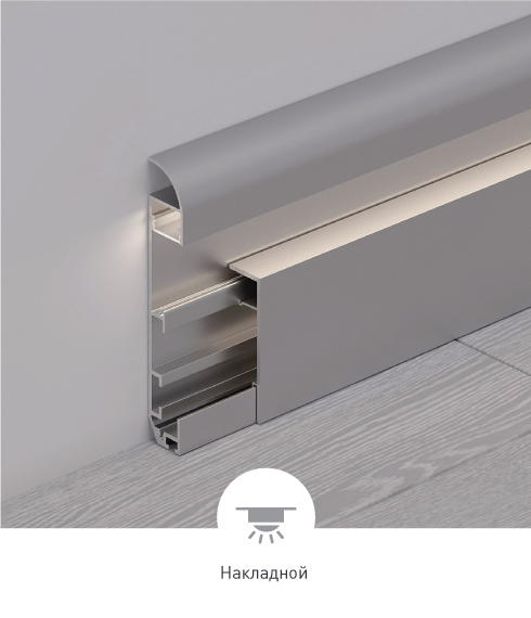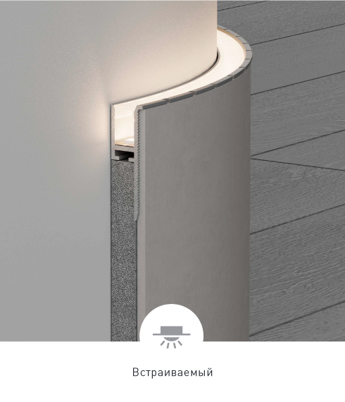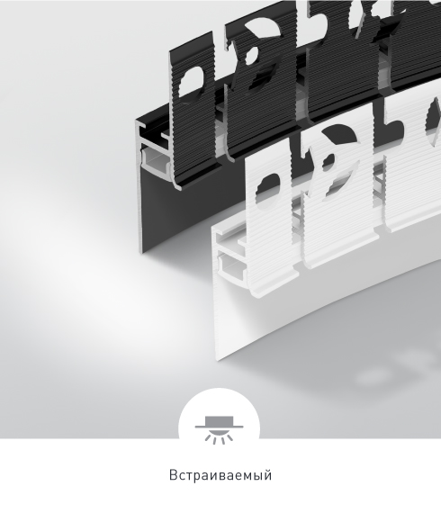 В серии PLINTUS представлен большой выбор профилей: двухкомпонентные, накладные, встраиваемые в ГКЛ (с видимым и со скрытым фланцем), а также уникальные гибкие модели. Подходят для декоративной подсветки стен и создают мягкое свечение по периметру комнаты.
