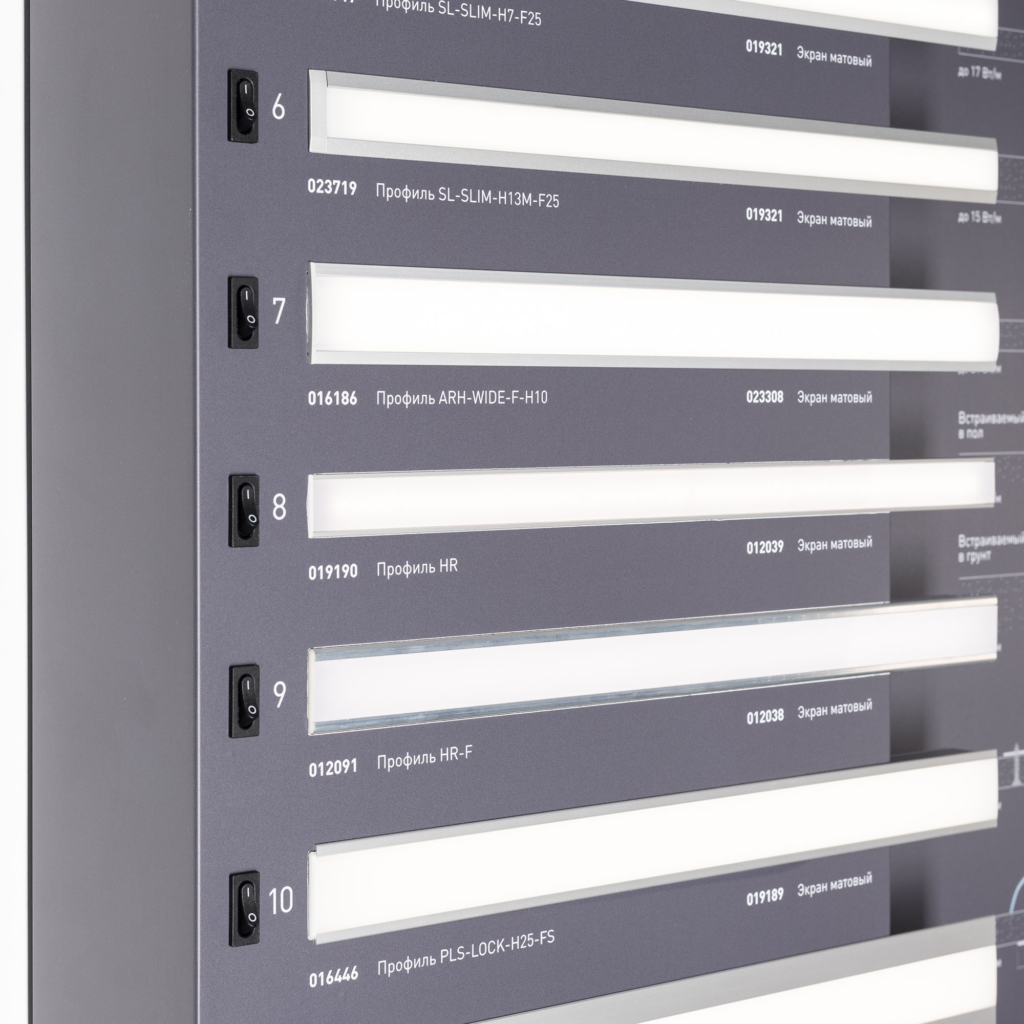 Стенд Алюминиевые Профили Встраиваемые со светодиодной лентой.