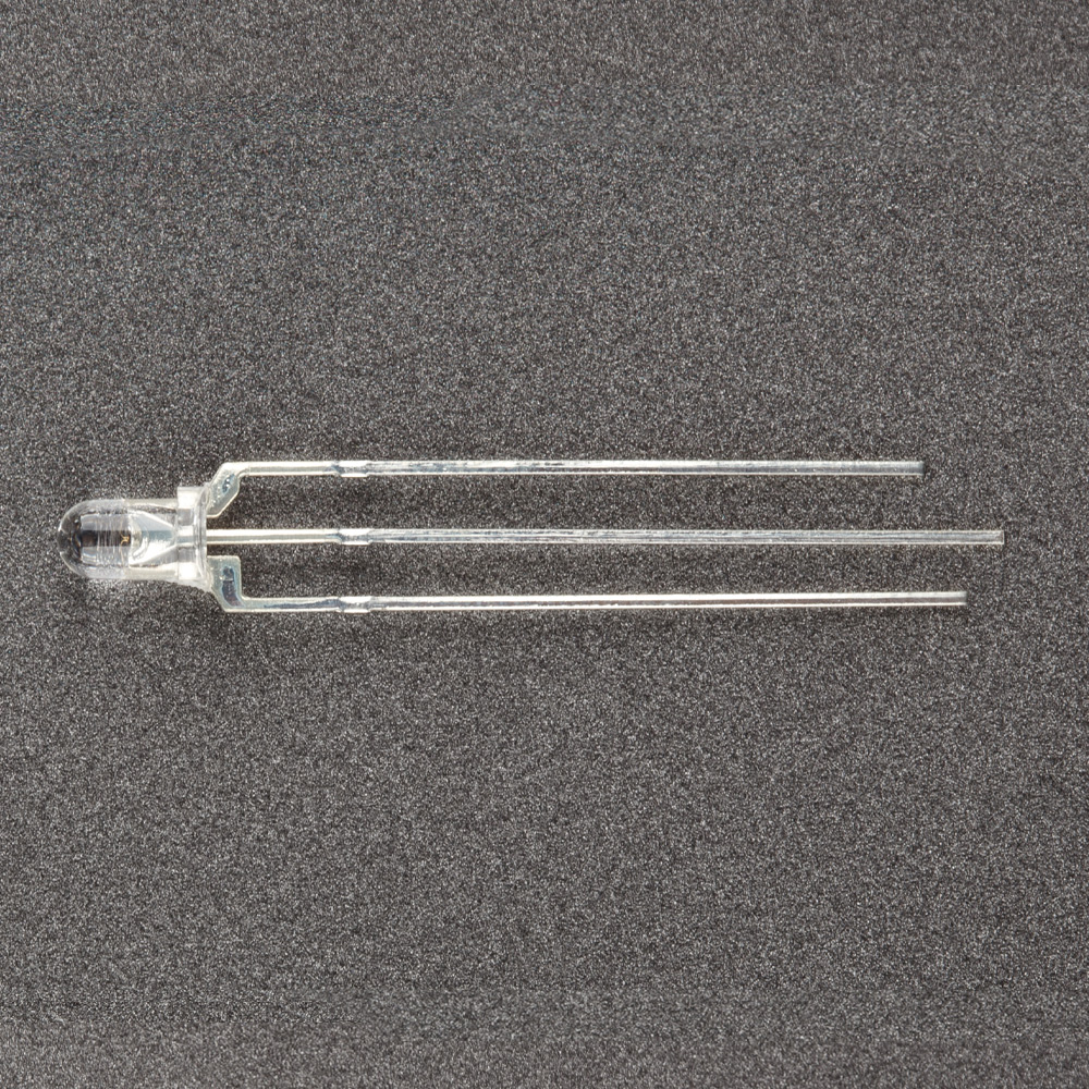 Поставка под заказ от 5000 шт. Выводной круглый светодиод, d=3 мм, прозрачная линза. Цвет свечения красный (625 нм), зеленый (570 нм). Угол излучения 40°. Сила света Iv=250-500 мкд при If=20 мА. VF=1.9-3.2 В. Три вывода, общий катод.