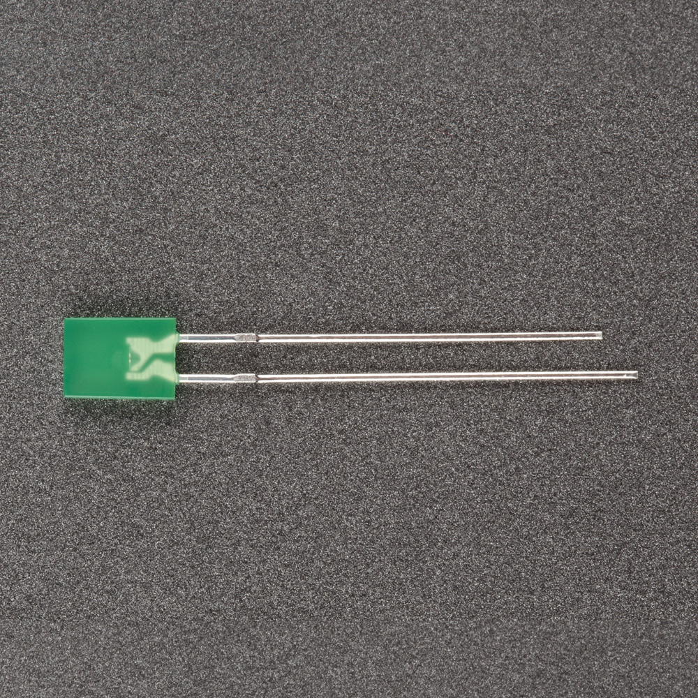 Поставка под заказ от 5000 шт. Выводной прямоугольный светодиод, 2×5×7 мм, зеленая диффузная линза. Цвет свечения зеленый (570 нм). Угол излучения 100-120°. Сила света Iv=400-700 мкд при If=20 мА. VF=2.9-3.4 В. Рекомендуемый постоянный рабочий ток <16-17 мА.