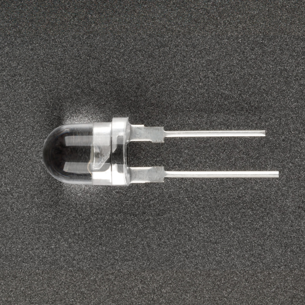 Выводной круглый мощный светодиод, d=10 мм, прозрачная линза. Цвет свечения зеленый (525 нм), 4 кристалла. Угол излучения 15°. Сила света Iv=30000-40000 мкд при If=80 мА. VF=3-3.8 В.
