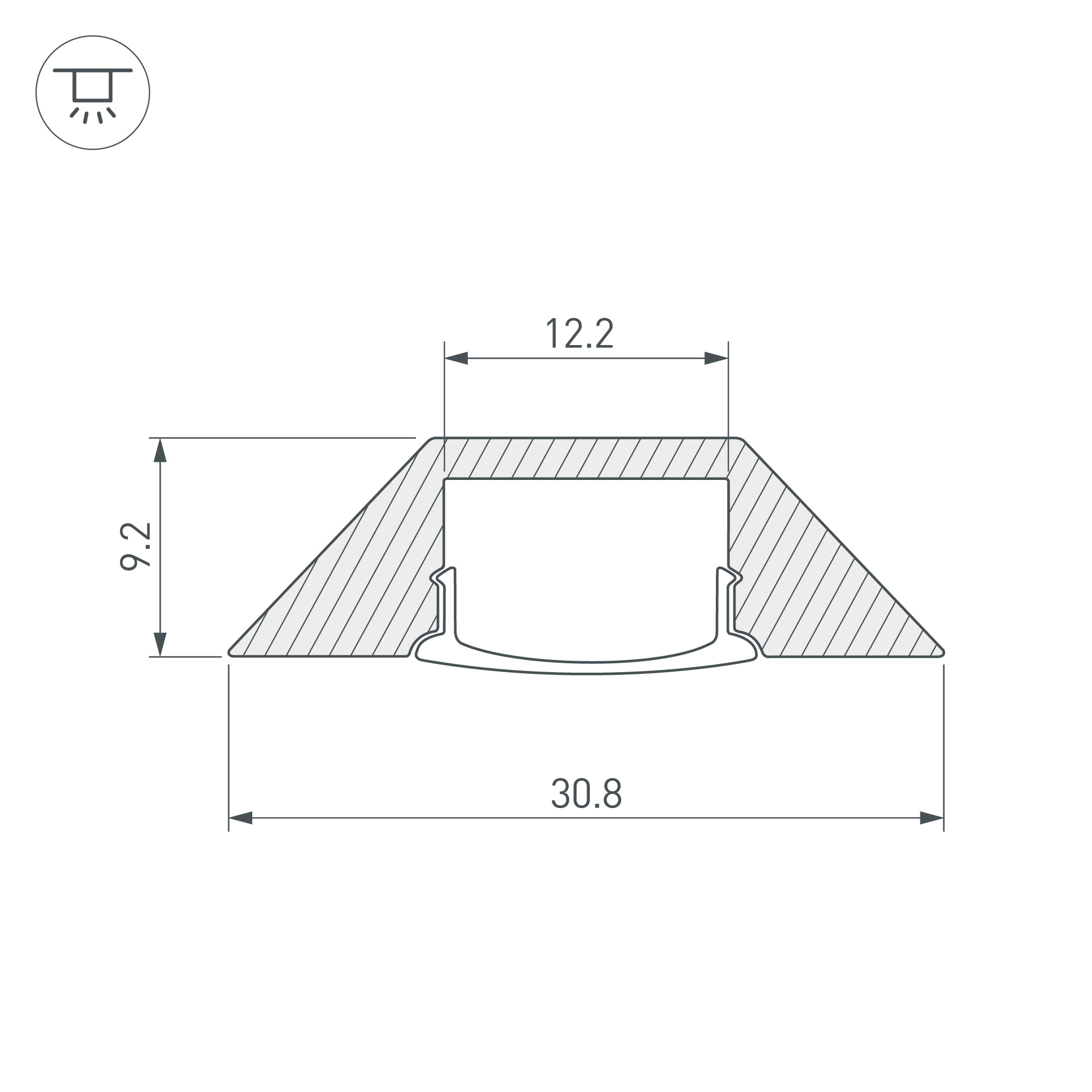 Поставка под заказ от 1 компл. Комплект с экраном. Алюминиевый анодированный профиль для светодиодных лент и линеек. Габаритные размеры (L×W×H): 2000x30,8x9,2 мм. Ширина площадки для ленты 12,2 мм. Аксессуары приобретаются отдельно. Цена за комплект: профиль - 2 м, экран - 2 м.