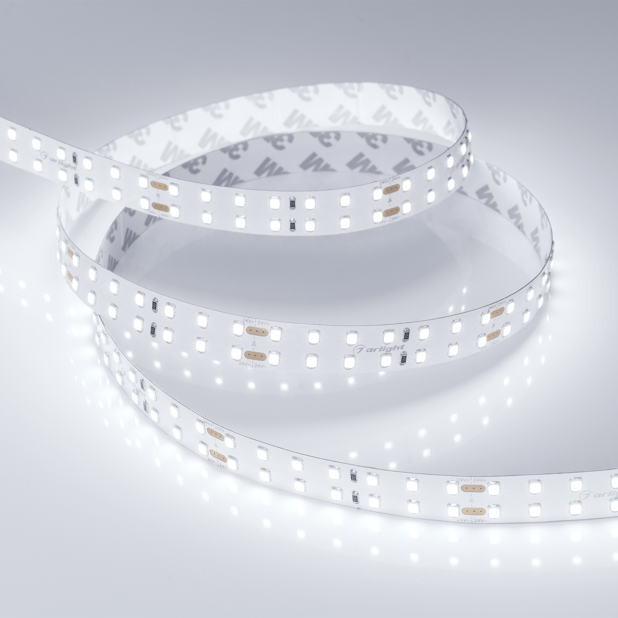 Широкая двухрядная лента LUX шириной 15 мм с индексом цветопередачи CRI>85 и высокой световой эффективностью >125 лм/Вт. Светодиоды SMD 2835 (196 шт/м) с белым цветом свечения (5800–6500 К). Мощность 20 Вт/м, напряжение питания 24 В. Минимальный отрезок 71.43 мм (14 светодиодов). Встроенные линии света для основного освещения. Создание накладных и подвесных светильников из алюминиевого профиля.