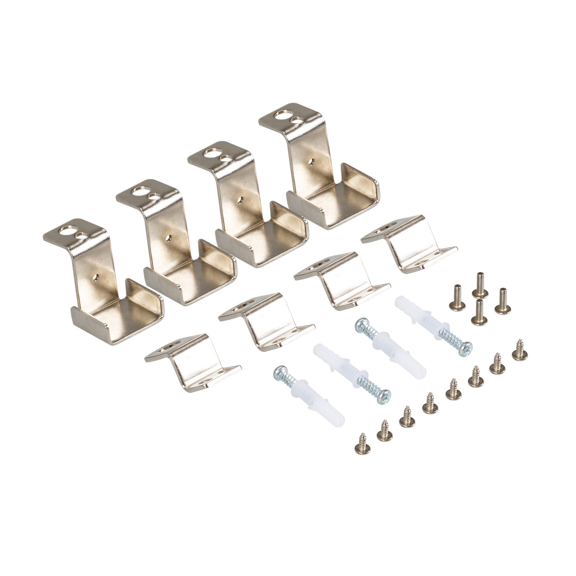Набор для накладной установки панелей 300×300, 600×600, 300×600. Подходит для крепления к потолку и стенам. В комплекте 4 держателя и 4 винта.