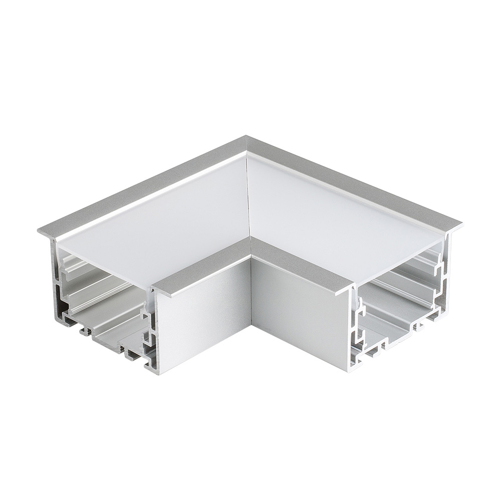 Прямой угол в сборе для соединения 2-х профилей S2-LINIA69-F под прямым углом 90°. Экран образует линию на плоскости. В комплекте матовый экран, соединители. Длина внешней стороны угла 100мм.