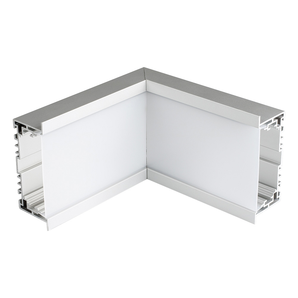 Внутренний прямой угол в сборе для соединения 2-х профилей S2-LINIA94-F под прямым углом 90°. Экран образует линию внутри угла. В комплекте матовый экран, соединители. Длина внешней стороны угла 150мм.