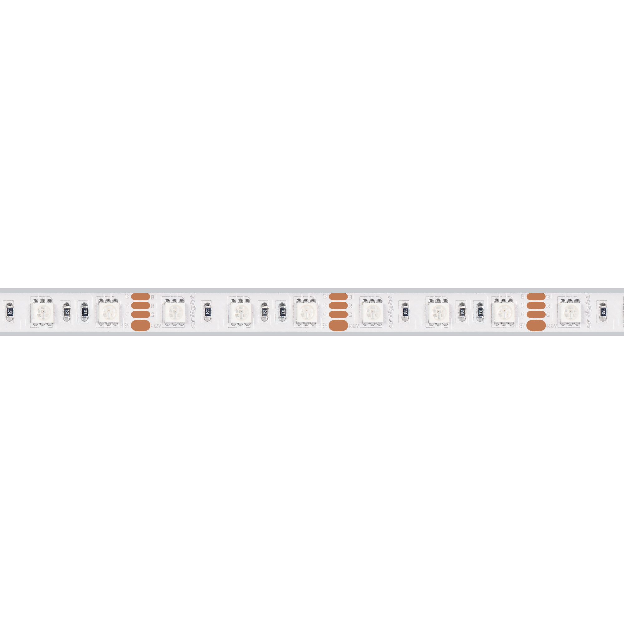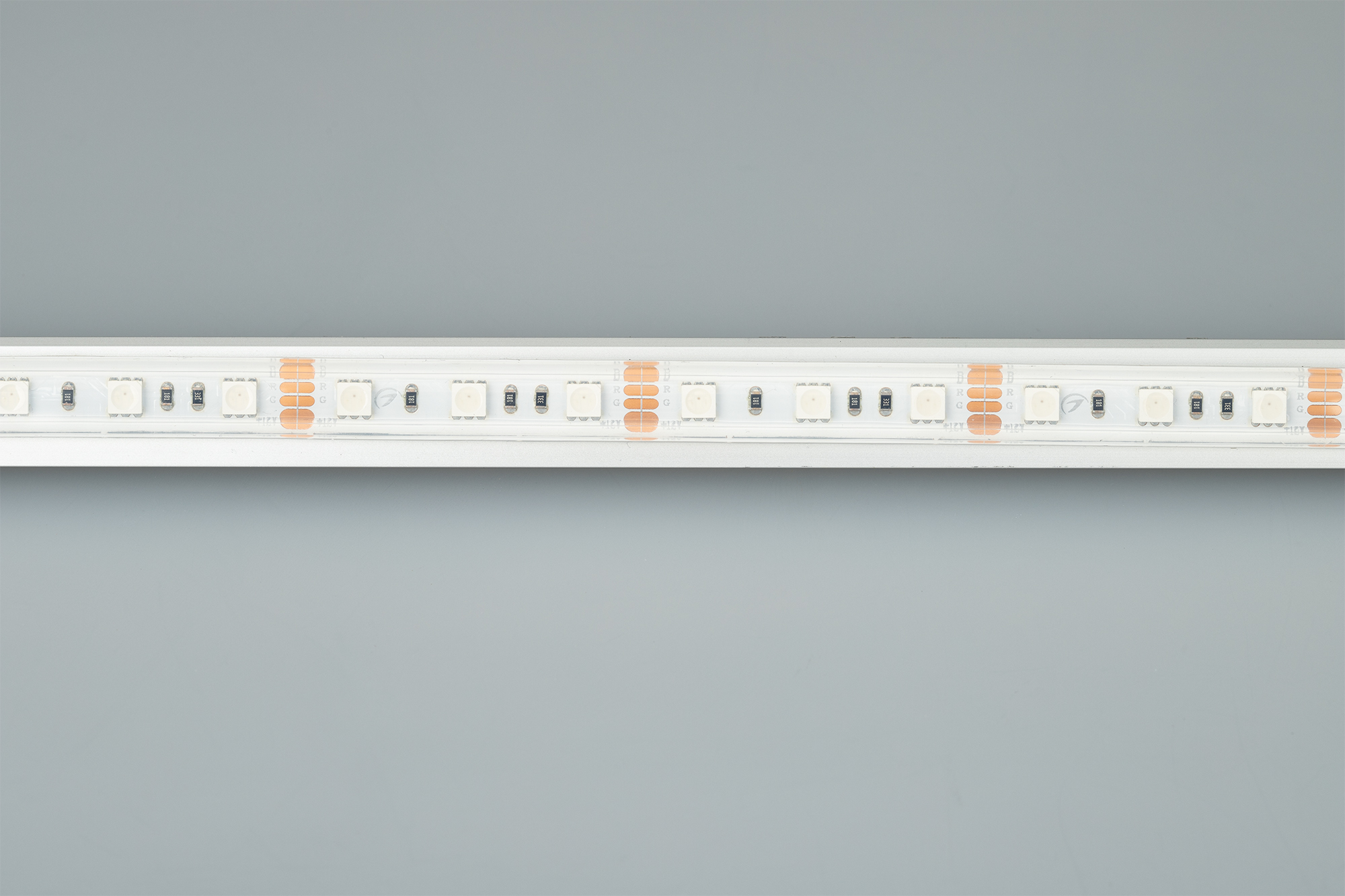 Герметичная лента IP67 (силикон, экструзия), светодиоды smd 5060, 60шт/м (300шт на 5м), белая плата 10мм, скотч 3М. Цвет Мультицвет R/G/B. Питание 12V, мощность 14.4 Вт/м (72 Вт на 5м), угол 120°. Размеры 5000х12x5мм. Мин.отрезок 50мм, 3 светодиода. Цена за 1м.
