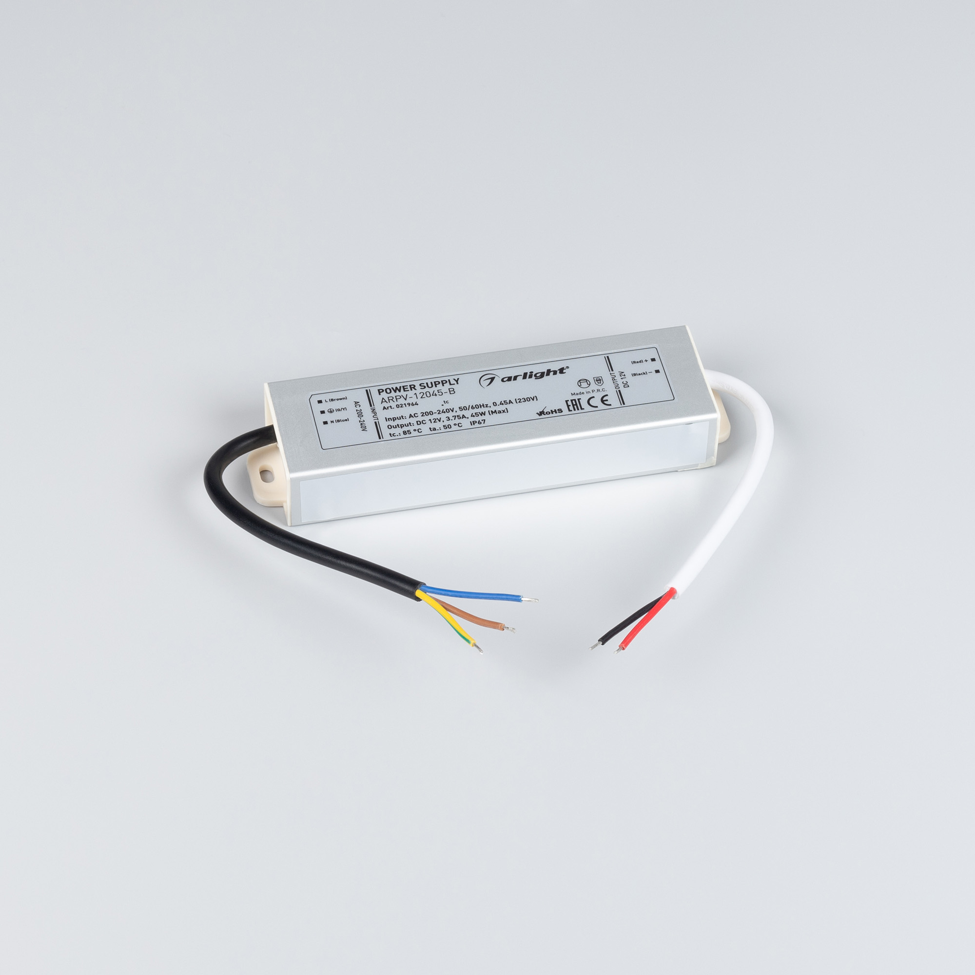 Источник напряжения с гальванической развязкой для светодиодных изделий. Входное напряжение 200-240 VAC. Выходные параметры: 12 В, 3,75 А, 45 Вт. Герметичный алюминиевый корпус IP 67. Рабочая температура -25…+50C⁰. Габаритные размеры длина 148 мм, ширина 40 мм, высота 22 мм. Гарантийный срок 3 года.