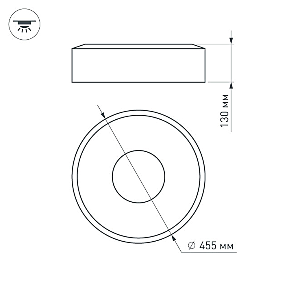 Накладной светильник 33Вт, белый круглый корпус. Цвет ДНЕВНОЙ БЕЛЫЙ 4000K, св.поток 1900лм, CRI(Ra)>80, угол 120°. Размер Ф455x130мм. Питание AC220-240V, 33Вт, драйвер встроенный (30-42V, 750mA).