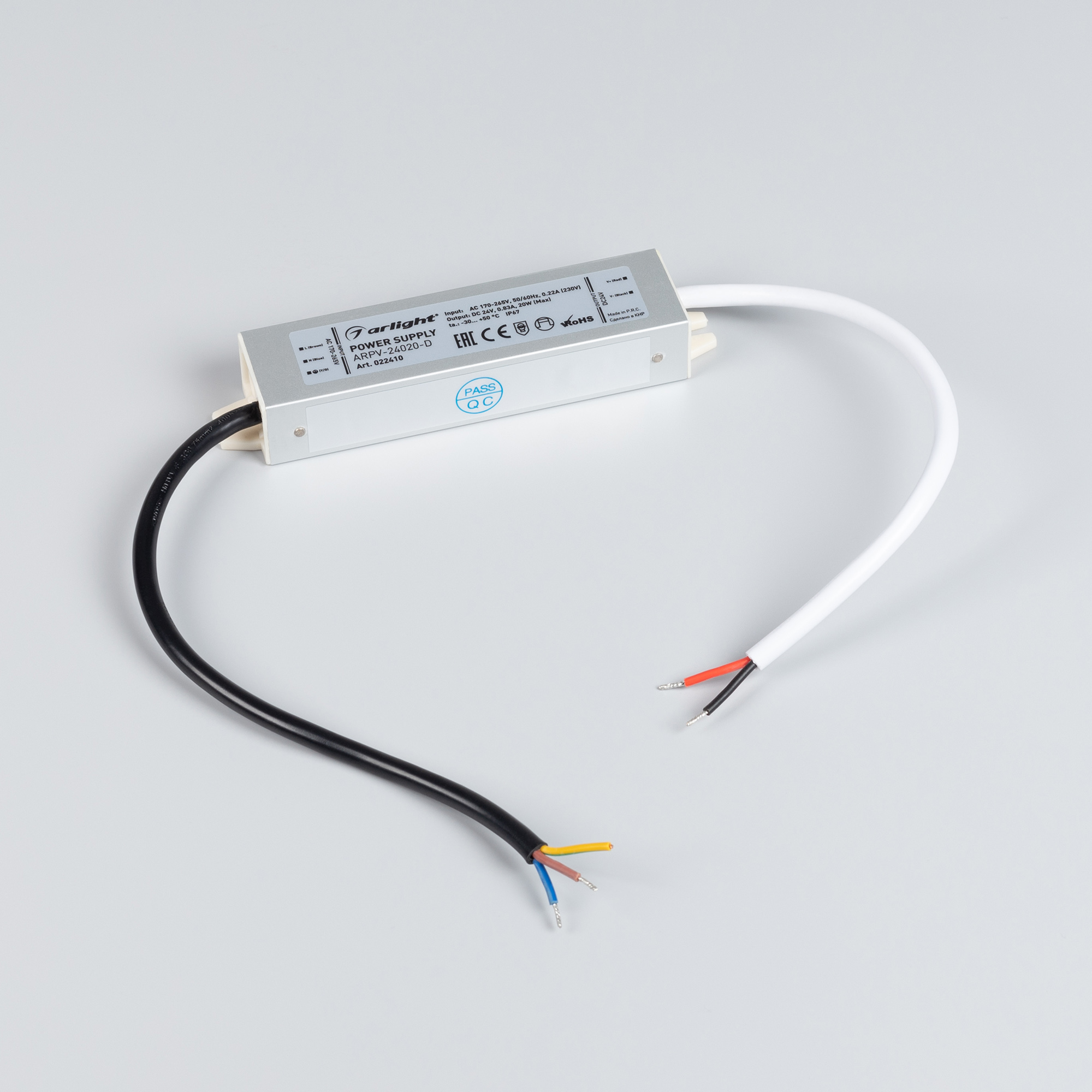 Источник напряжения с гальванической развязкой для светодиодных изделий. Входное напряжение 170-265 VAC. Выходные параметры: 24 В, 0,83 А, 20 Вт. Герметичный алюминиевый корпус IP 67. Рабочая температура -30…+50C⁰. Габаритные размеры длина 127 мм, ширина 30 мм, высота 20 мм. Гарантийный срок 3 года.