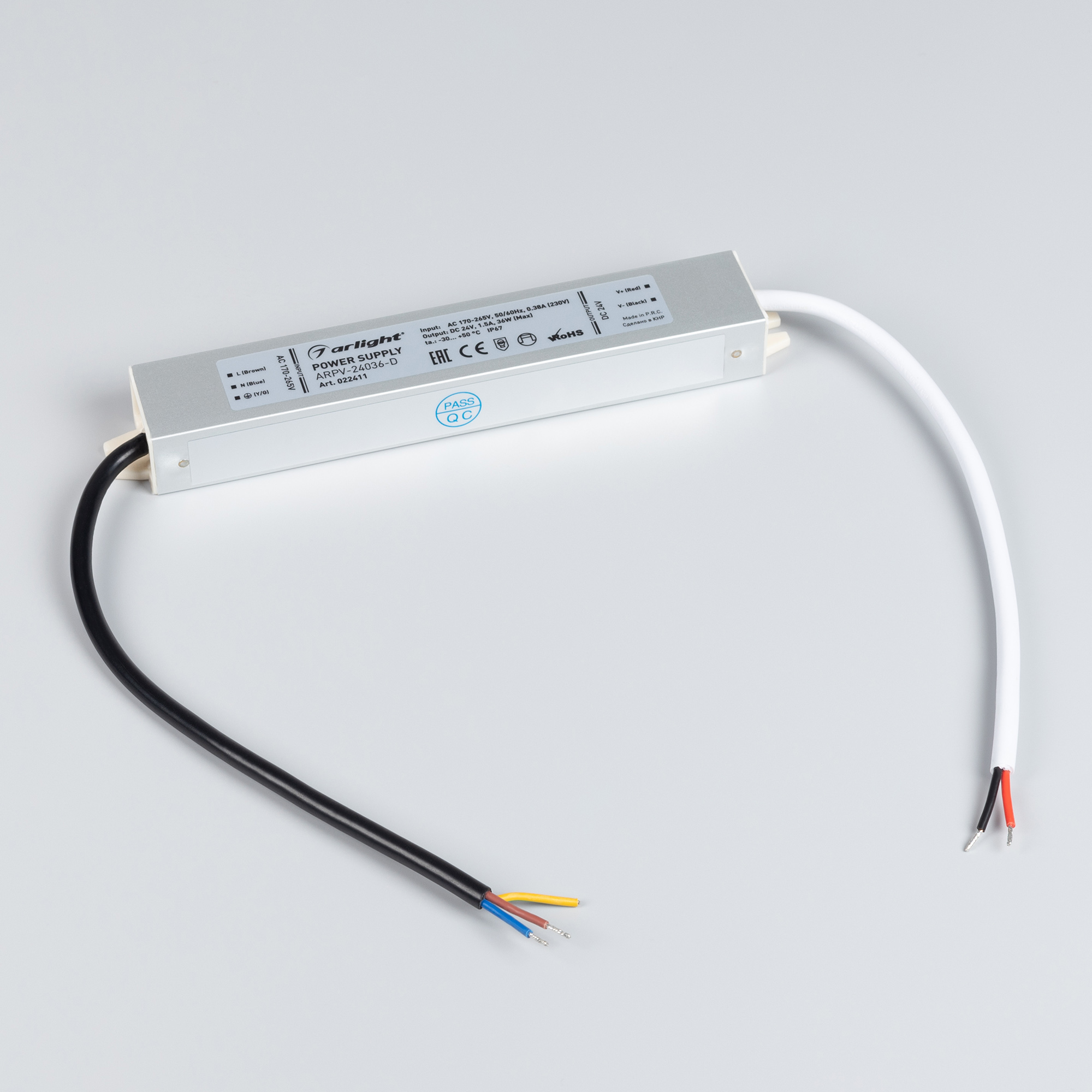 Источник напряжения с гальванической развязкой для светодиодных изделий. Входное напряжение 170-265 VAC. Выходные параметры: 24 В, 1,5 А, 36 Вт. Герметичный алюминиевый корпус IP 67. Рабочая температура -30…+50C⁰. Габаритные размеры длина 182 мм, ширина 30 мм, высота 20 мм. Гарантийный срок 3 года.