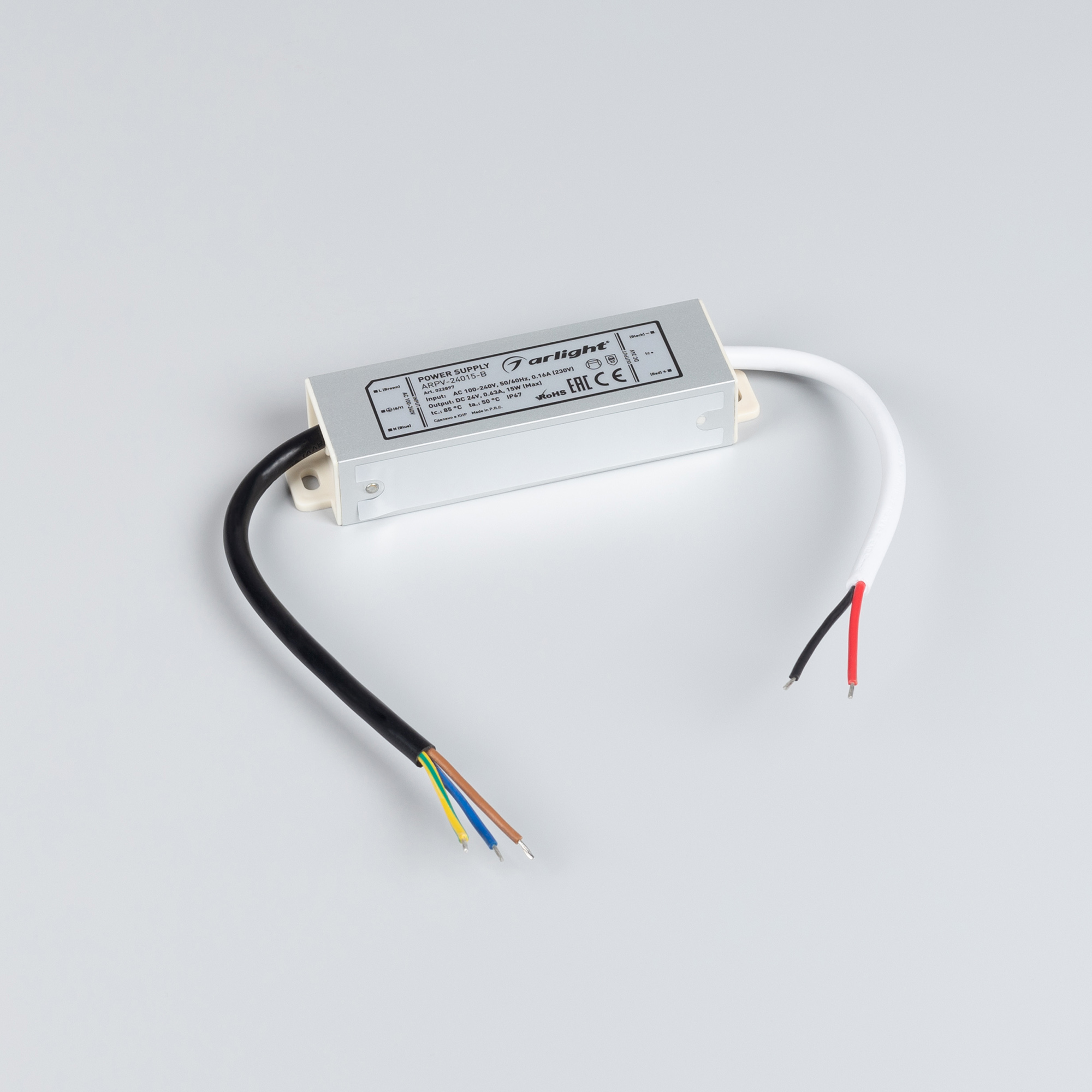 Источник напряжения с гальванической развязкой для светодиодных изделий. Входное напряжение 100-240 VAC. Выходные параметры: 24 В, 0,63 А, 15 Вт. Герметичный алюминиевый корпус IP 67. Рабочая температура -25…+50C⁰. Габаритные размеры длина 109 мм, ширина 29 мм, высота 20 мм. Гарантийный срок 3 года.