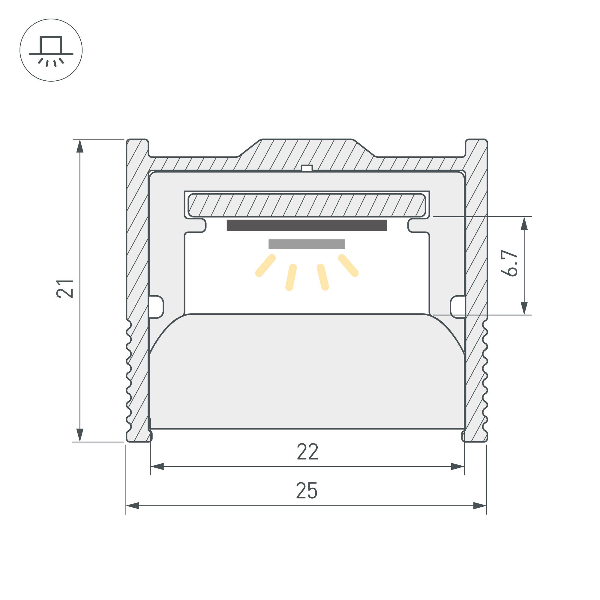 Алюминиевый анодированный профиль-держатель для напольного профиля WPH-FLOOR22. Габаритные размеры профиля составляют 2000 мм в длину, 24,7 мм в ширину и 20,9 мм в высоту. При соблюдении технологии герметизации этот профиль позволяет создать водонепроницаемые напольные конструкции в помещениях, кратковременно подвергающихся воздействию воды. Экран, заглушки и другие аксессуары не включены в комплект и приобретаются отдельно. Цена указана за 1 метр профиля.