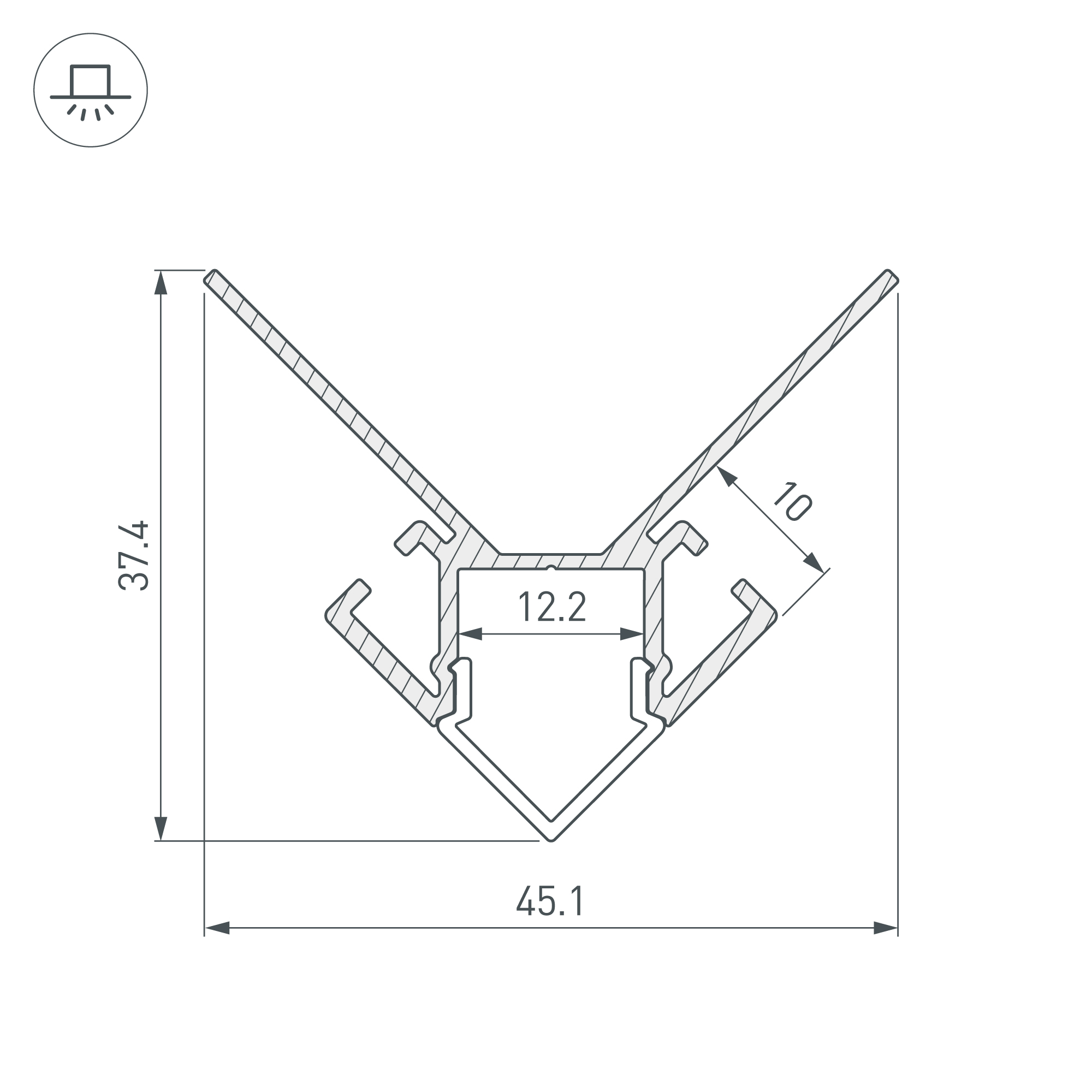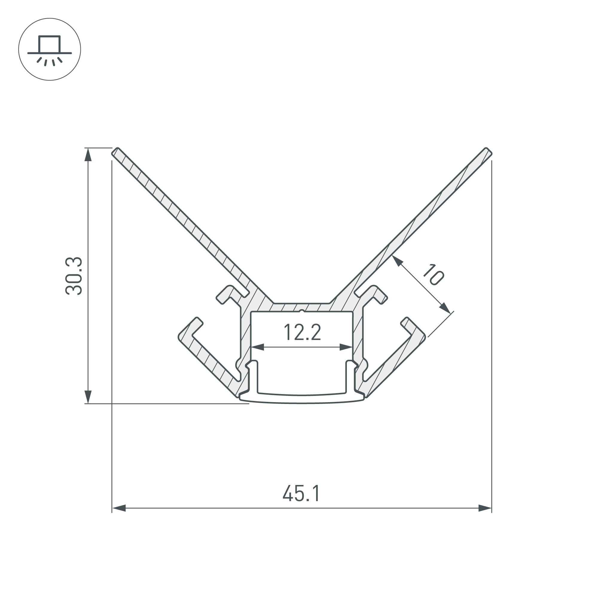 Встраиваемый угловой алюминиевый анодированный профиль для светодиодных лент и линеек под строительную отделку или плитку для контурной подсветки внешних углов. Габаритные размеры этого профиля составляют 2000 мм в длину, 45,1 мм в ширину и 30,3 мм в высоту. Площадка для установки светодиодных лент позволяет использовать ленту шириной до 12 мм и мощностью до 33 Вт/м. Это обеспечивает гибкость в выборе светодиодных лент и создает потрясающие световые решения. Экраны, заглушки и другие аксессуары не включены в комплект и приобретаются отдельно. Цена указана за 1 метр профиля. Отличное решение для создания современных световых проектов.