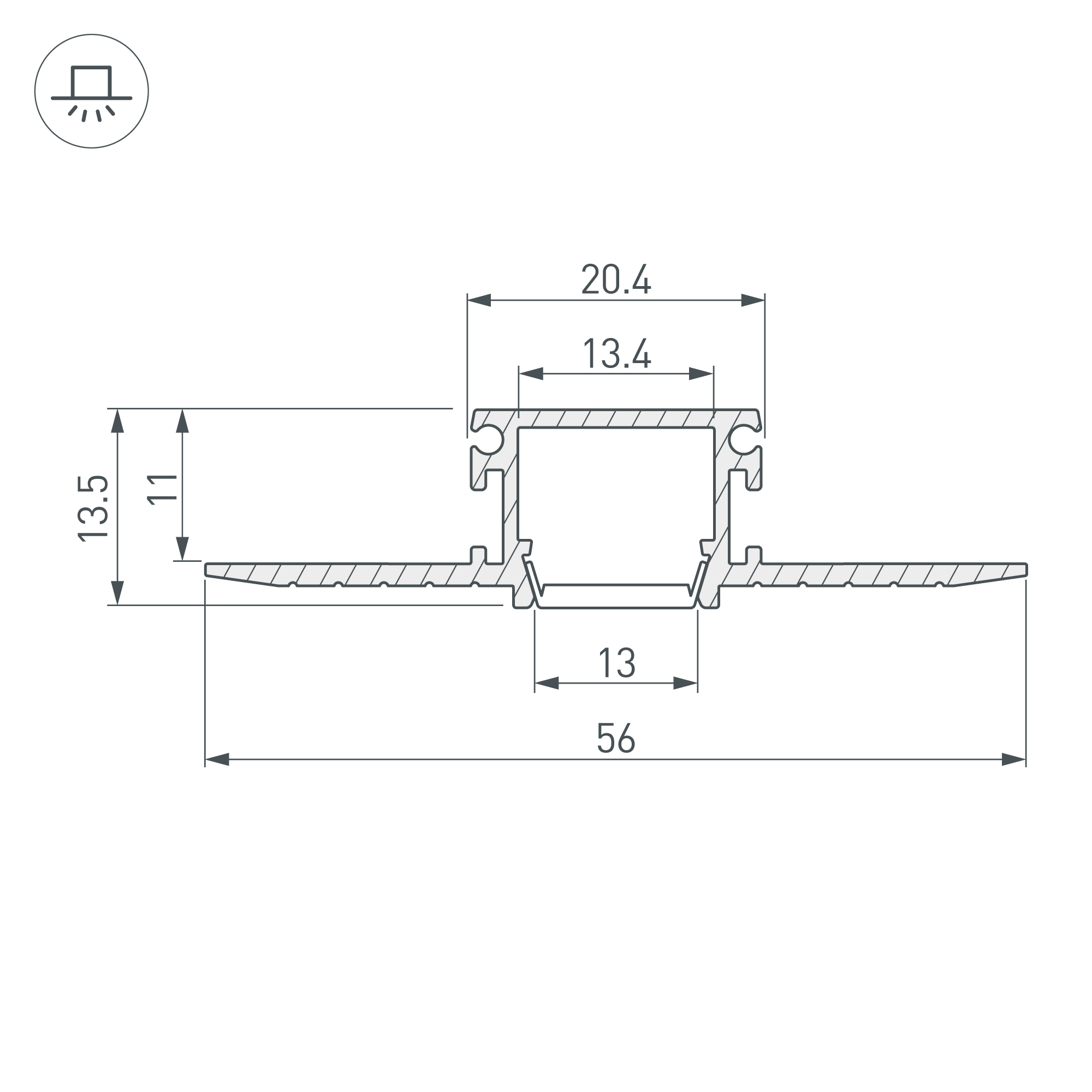 Алюминиевый встраиваемый профиль со скрытым фланцем под строительную отделку для основного освещения и контурной подсветки. Габаритные размеры профиля составляют 2000 мм в длину, 56 мм в ширину и 13,4 мм в высоту. Площадка для установки светодиодных лент позволяет использовать ленту шириной до 13,4 мм и мощностью до 31,4 Вт/м. Это обеспечивает гибкость в выборе светодиодных лент и создает потрясающие световые решения. Поставляется в комплекте с дополнительным экраном, который служит защитой профиля от пыли при монтаже. Экраны, заглушки и другие аксессуары не включены в комплект и приобретаются отдельно. Цена указана за 1 метр профиля. Отличное решение для создания современных световых проектов. Перед установкой профиля в гипсокартон ОБЯЗАТЕЛЬНО установите в профиль экран.