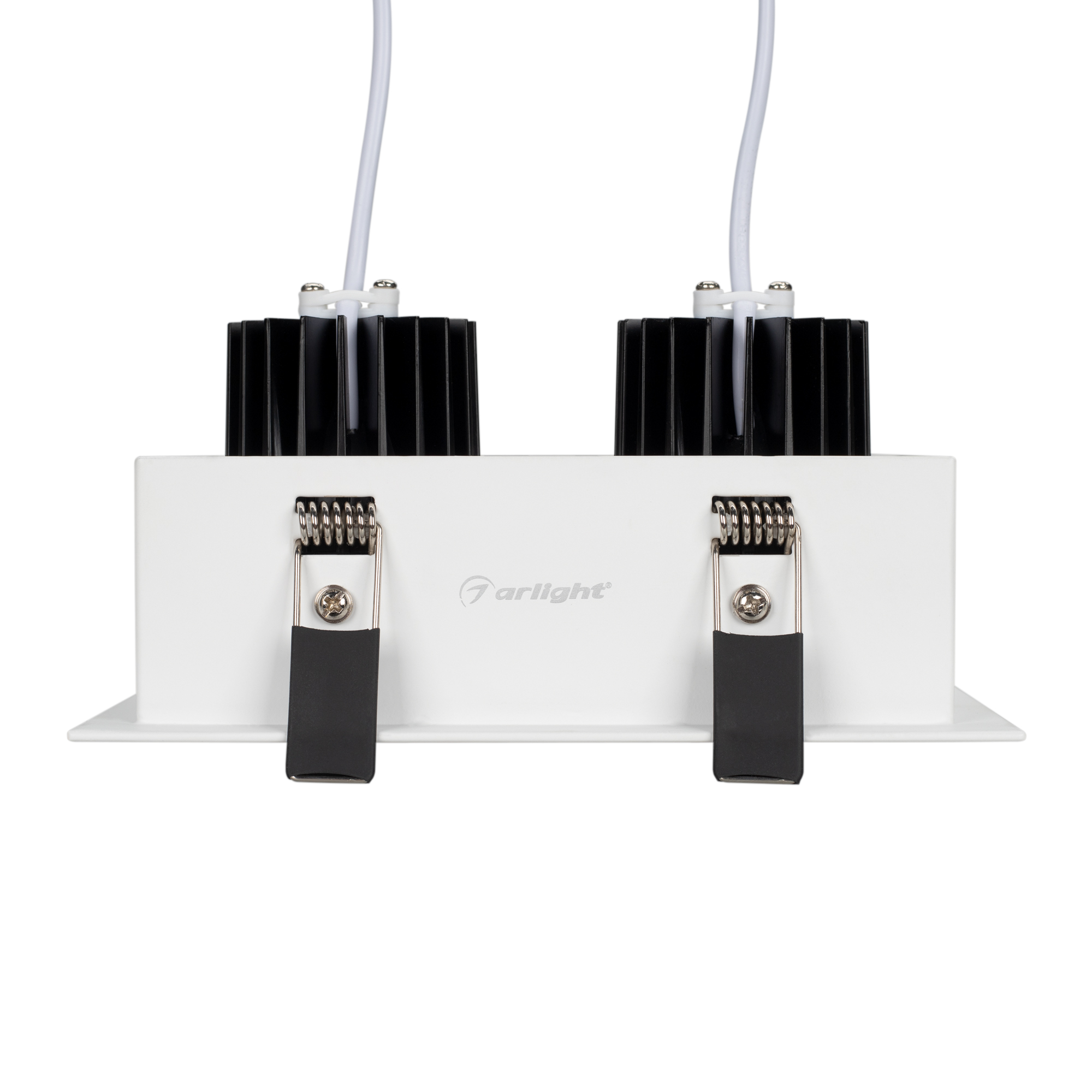 Встраиваемый карданный светильник. Угол 38° / 2x9Вт / ДНЕВНОЙ БЕЛЫЙ 4000K / 1440лм, CRI>80. Корпус из белого алюминия. Питание AC180-240V, 18Вт, в комплекте 2 драйвера 200mA 30-45V. Размеры LxWxH: 180х102x85мм, отверстие для установки 160x85мм.
