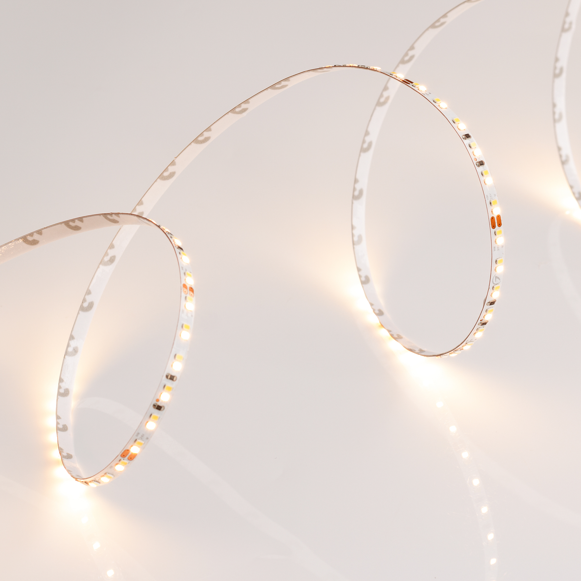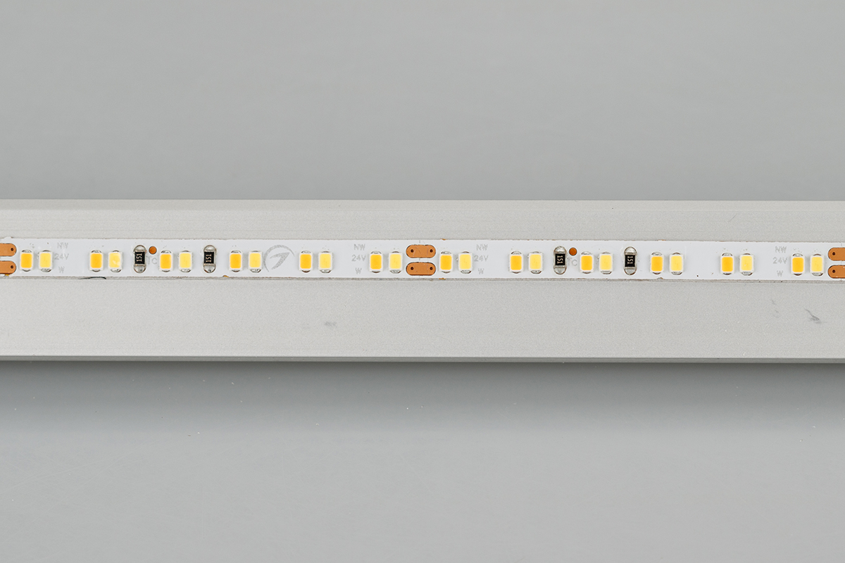Биполярная узкая светодиодная лента MICROLED серии M240 с изменяемым цветом свечения. Светодиоды SMD 2216, 240 шт/м, белая плата шириной 4.5 мм, скотч 3M. Цвет БЕЛЫЙ 6000K + ТЕПЛЫЙ 2700K, индекс цветопередачи CRI>90, угол 120°. Питание 24 В, мощность 9.6 Вт/м (48 Вт на 5 м). Размеры 5000x4.5x1.2 мм. Мин. отрезок 50 мм, 12 светодиодов. Цена за 1 м.