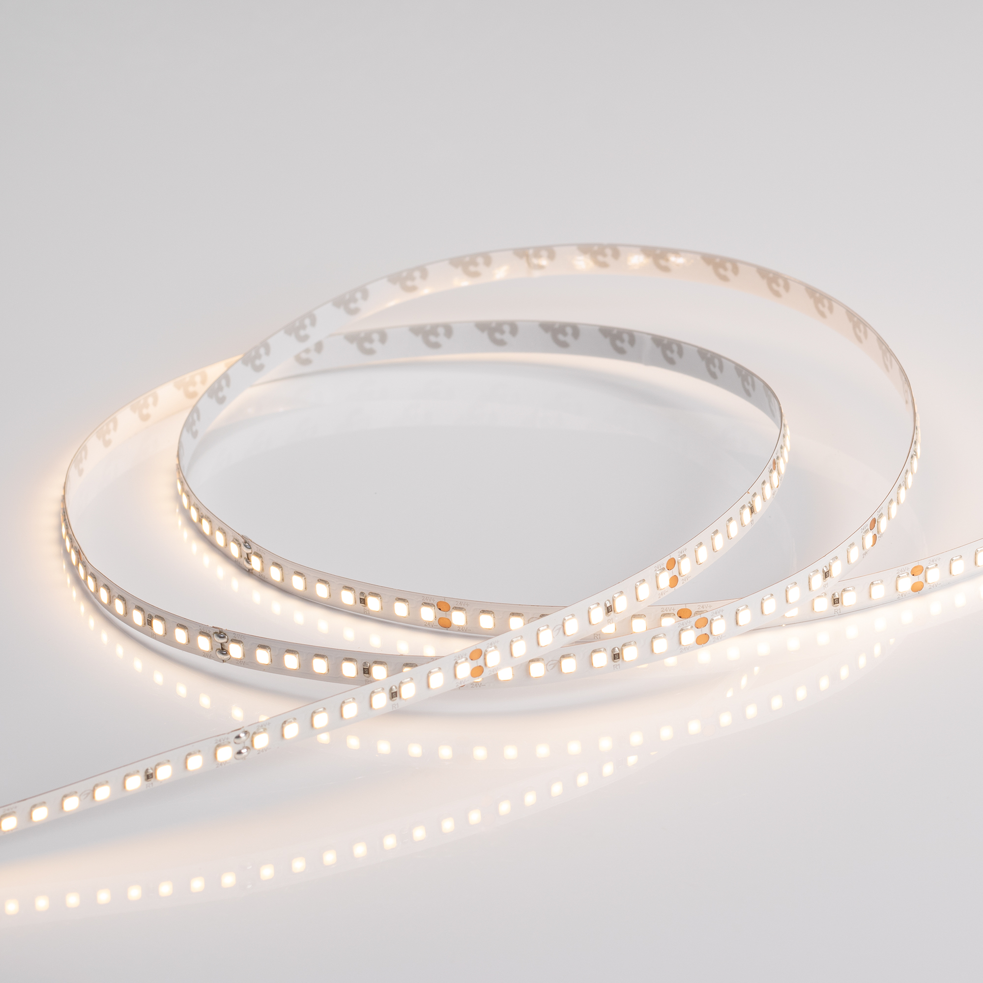 Светодиодная лента шириной 8 мм и мощностью 12 Вт/м. Светодиоды SMD 2835 (160 шт/м) теплого белого цвета свечения (2900–3100 К). Высокая световая эффективность 150 лм/Вт. Напряжение питания 24 В. Минимальный отрезок 50 мм (8 светодиодов). Для основного и декоративного освещения, подсветки рекламных конструкций и витрин.