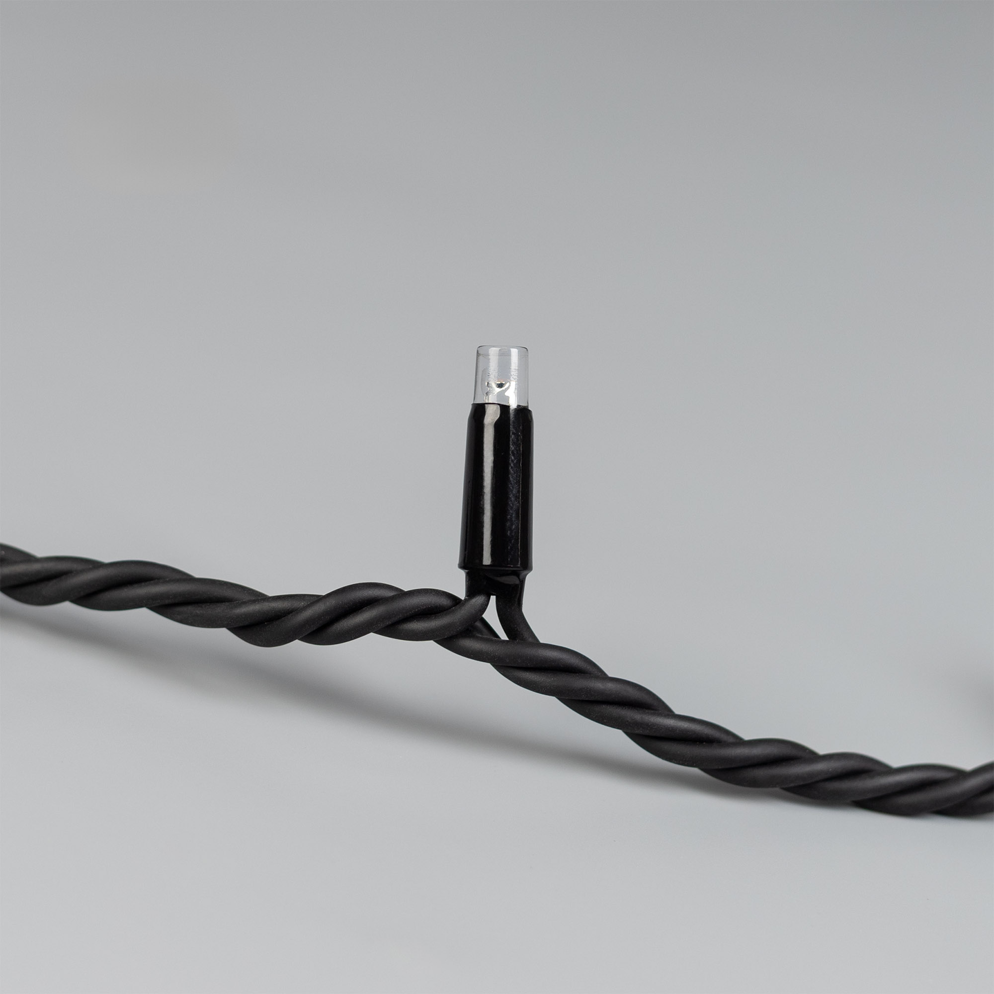 Универсальная светодиодная гирлянда "НИТЬ" серии Pro, предназначенная для декорирования и создания праздничного настроения как внутри помещений, так и снаружи (степень пылевлагозащиты IP65 позволяет размещать гирлянду на улице под навесом). Имея длину 10000 мм, она может использоваться для оформления средних и больших площадей. Универсальные соединительные разъемы позволяют наращивать длину до 50 м без использования дополнительных аксессуаров. Прозрачная вогнутая линза и эффект мерцания редких точек обеспечивают яркое и динамичное освещение, выделяя украшаемые объекты. Теплый белый свет, в сочетании с холодным белым, помогает создать необходимую атмосферу для декоративного объекта. Провод изготовлен из каучука и окрашен в чёрный цвет. Аксессуары для подключения и управления приобретаются отдельно.