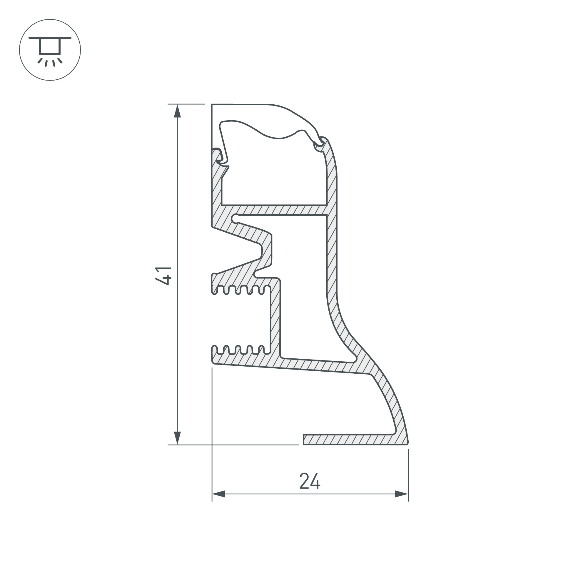 Накладной профиль-плинтус из анодированного алюминия для контурной подсветки помещения. Габаритные размеры этого профиля составляют 2000 мм в длину, 24 мм в ширину и 41 мм в высоту. Площадка для установки светодиодных лент позволяет использовать ленту шириной до 12 мм и мощностью до 27 Вт/м. Это обеспечивает гибкость в выборе светодиодных лент и создает потрясающие световые решения. Экран, заглушки и другие аксессуары не включены в комплект и приобретаются отдельно. Цена указана за 1 метр профиля. Простая установка без предварительной подготовки стен. Отличное решение для создания современных световых проектов.