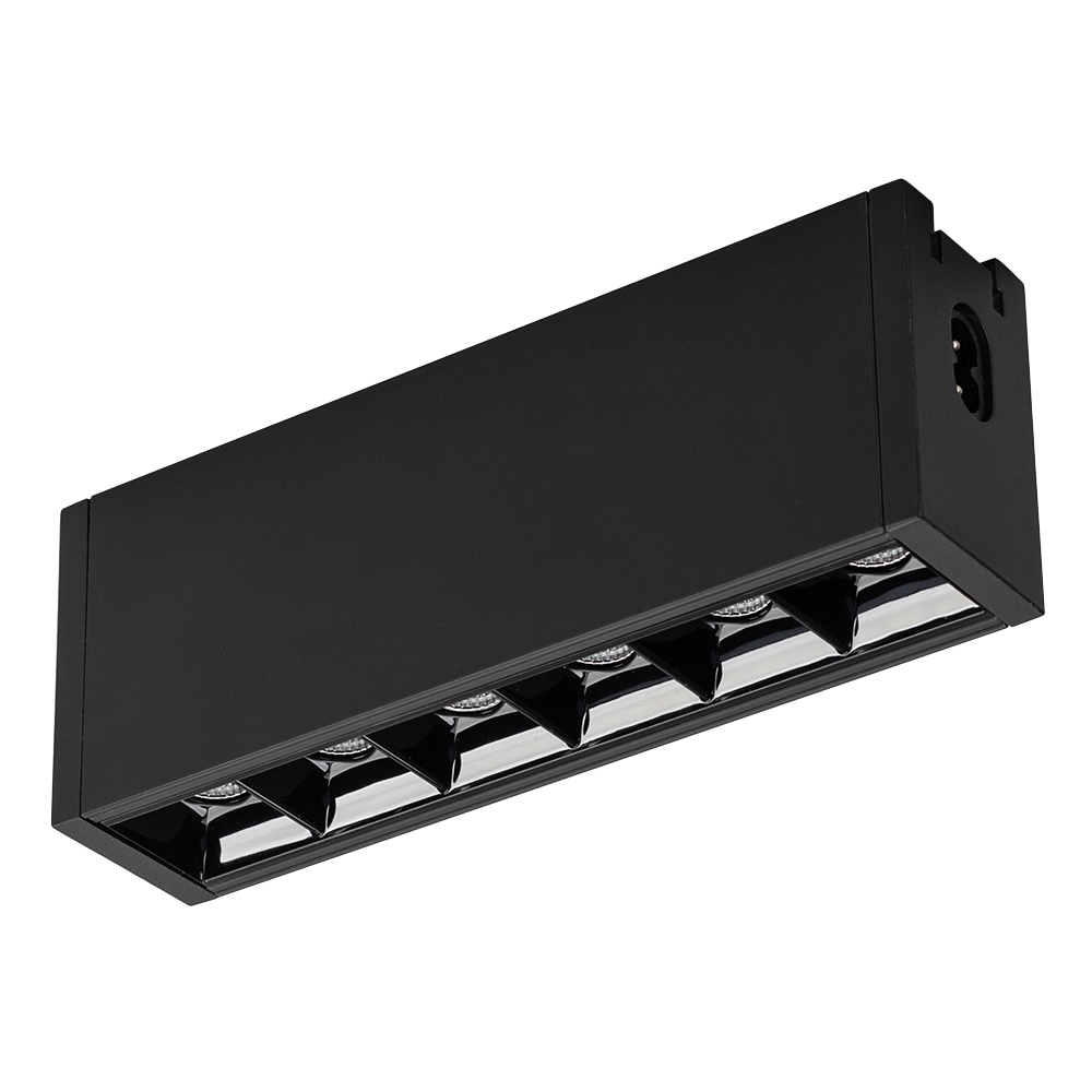 Подвесной/накладной светильник для системы CLIP 38мм, 6Вт. Цвет свечения ТЕПЛЫЙ 3000K, световой поток 460 лм, угол 36°, CRI>90. Корпус прямоугольный, металл, цвет черный, IP40. Размеры LxWxH 171x38x64мм. Входное напряжение DC24V, мощность 6Вт. Драйвер в комплект не входит.