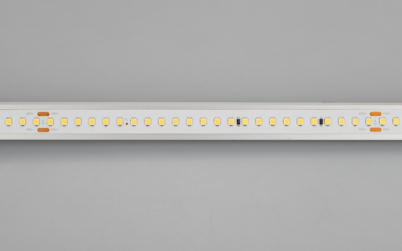 Стабилизированная лента длиной 50 метров и шириной 12 мм. Стабилизаторы тока обеспечивают равномерное свечение по всей длине ленты даже при подключении только с одной стороны. Светодиоды SMD 2835 (144 шт/м) холодного белого цвета свечения (7700–9600 K) с индексом цветопередачи CRI>85. Мощность 5.8 Вт/м, напряжение питания 48 В. Подсветка потолочных ниш, декоративная подсветка, создание контуров рекламных объектов. Совместима с любыми диммерами (ШИМ). Минимальный отрезок 166.67 мм (24 светодиода).