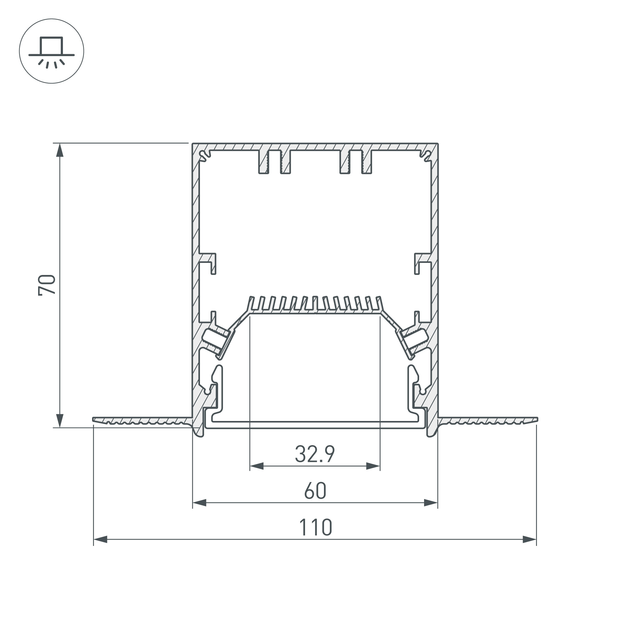 Встраиваемый профиль из анодированного алюминия со скрытым фланцем под строительную отделку устанавливается в потолки и потолочные ниши из гипсокартона для основного освещения и контурной подсветки помещений. Отсек для блока питания (48х30 мм) и съемная площадка для светодиодной ленты значительно облегчают сервисное обслуживание осветительного оборудования. Габаритные размеры профиля составляют 2000 мм в длину, 110 мм в ширину и 70 мм в высоту. Площадка для установки светодиодных лент позволяет использовать ленту шириной до 32 мм и мощностью до 30 Вт/м. Это обеспечивает гибкость в выборе светодиодных лент и создает потрясающие световые решения. Экраны, заглушки и другие аксессуары не включены в комплект и приобретаются отдельно. Цена указана за 1 метр профиля. Отличное решение для создания современных световых проектов. Перед установкой профиля в гипсокартон ОБЯЗАТЕЛЬНО установите в профиль экран.