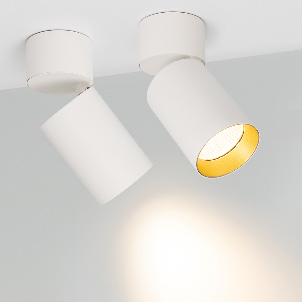 Накладной откидной светильник SP-POLO-SURFACE-FLAP-R85-15W Warm3000 (WH-GD, 40 deg) мощностью 15 Вт с теплым белым цветом свечения (3000 К) и индексом цветопередачи CRI>80. Откидной механизм предусматривает возможность быстрой регулировки направления света. Встроенный драйвер обеспечивает быстрое и безопасное подключение к сети 230 В. Светильник с узким углом излучения 40° и световым потоком 1100 лм предназначен для локального интерьерного освещения и реализации дизайнерских решений в разных помещениях.