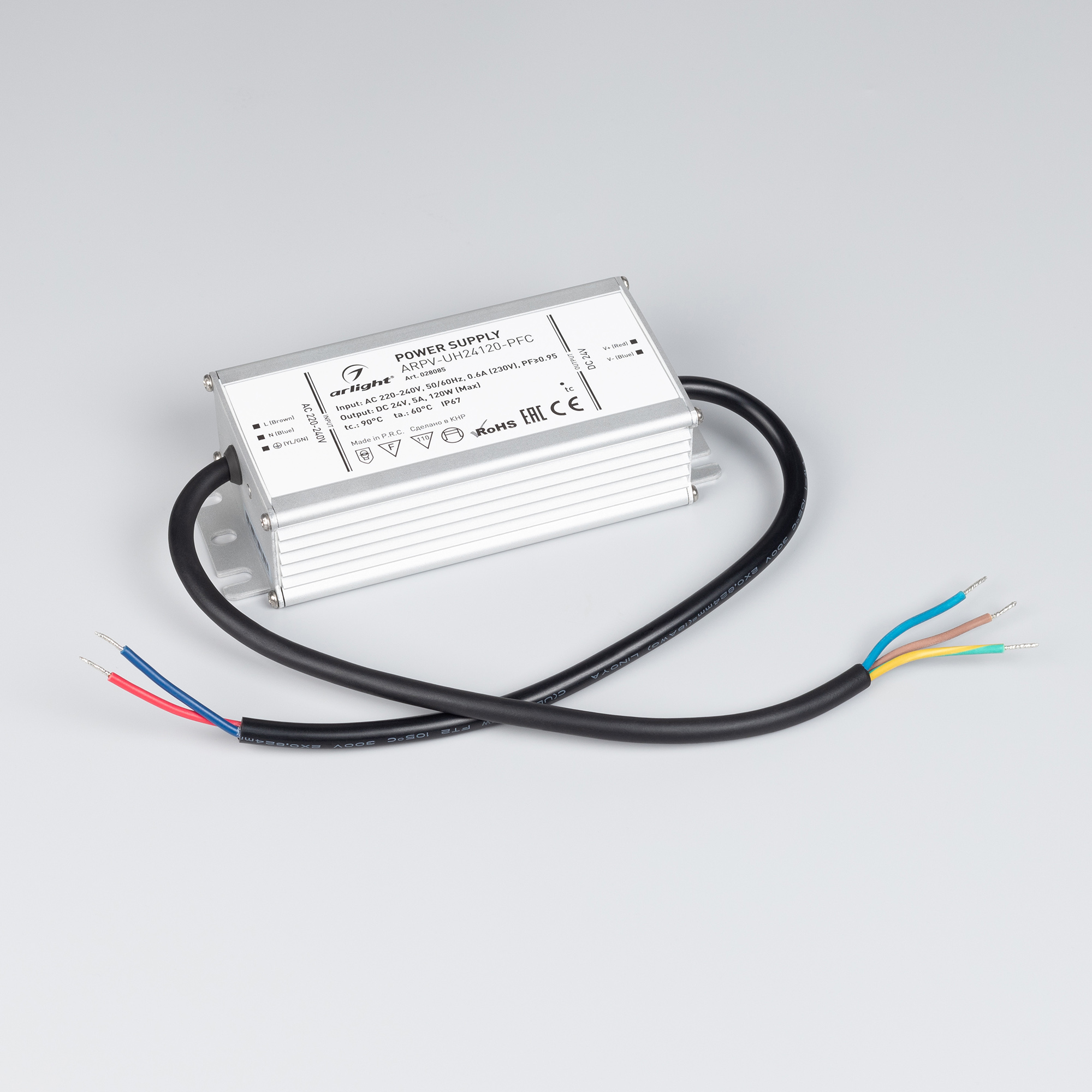 Источник напряжения с гальванической развязкой для светодиодных изделий. Входное напряжение 220-240 VAC. Выходные параметры: 24 В, 5 А, 120 Вт. Встроенный PFC >0.95. Герметичный алюминиевый корпус IP 67. Рабочая температура -40…+60C⁰. Габаритные размеры длина 158 мм, ширина 67.5 мм, высота 38.5 мм. Гарантийный срок 7 лет. .