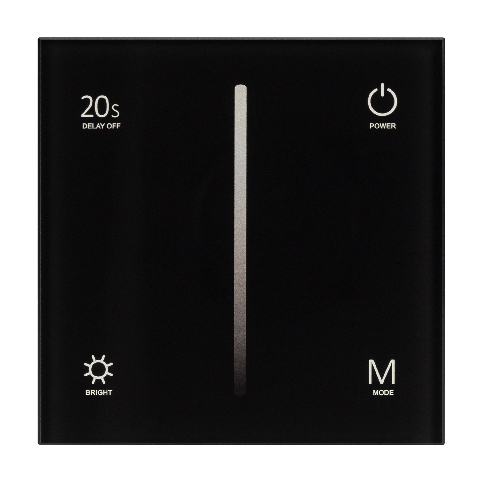 Встраиваемая сенсорная панель чёрного цвета, предназначенная для управления светодиодными или другими источниками света с напряжением питания 230В. Панель позволяет включать и выключать свет и регулировать его яркость. Удобное и точное управление при помощи сенсорной полосы и сенсорных кнопок. Стильный и современный дизайн, позволяющий устанвливать панель в большинство типов подрозетников и сочетающийся с большинством интерьеров. Панелью можно управлять пультами ДУ и другими панелями серии SMART по радиоканалу 2.4G. Возможна привязка до 10 пультов или панелей управления. Питание 230В, максимальный выходной ток 1.2А, максимальная мощность 288 Вт, максимальная мощность для электронной нагрузки 72 ВА. Габариты устройства 86х86х35 мм. Панель выполнена из стекла, устойчивого к появлению царарин и загрязнения. Устанавливается в стандартную монтажную коробку.