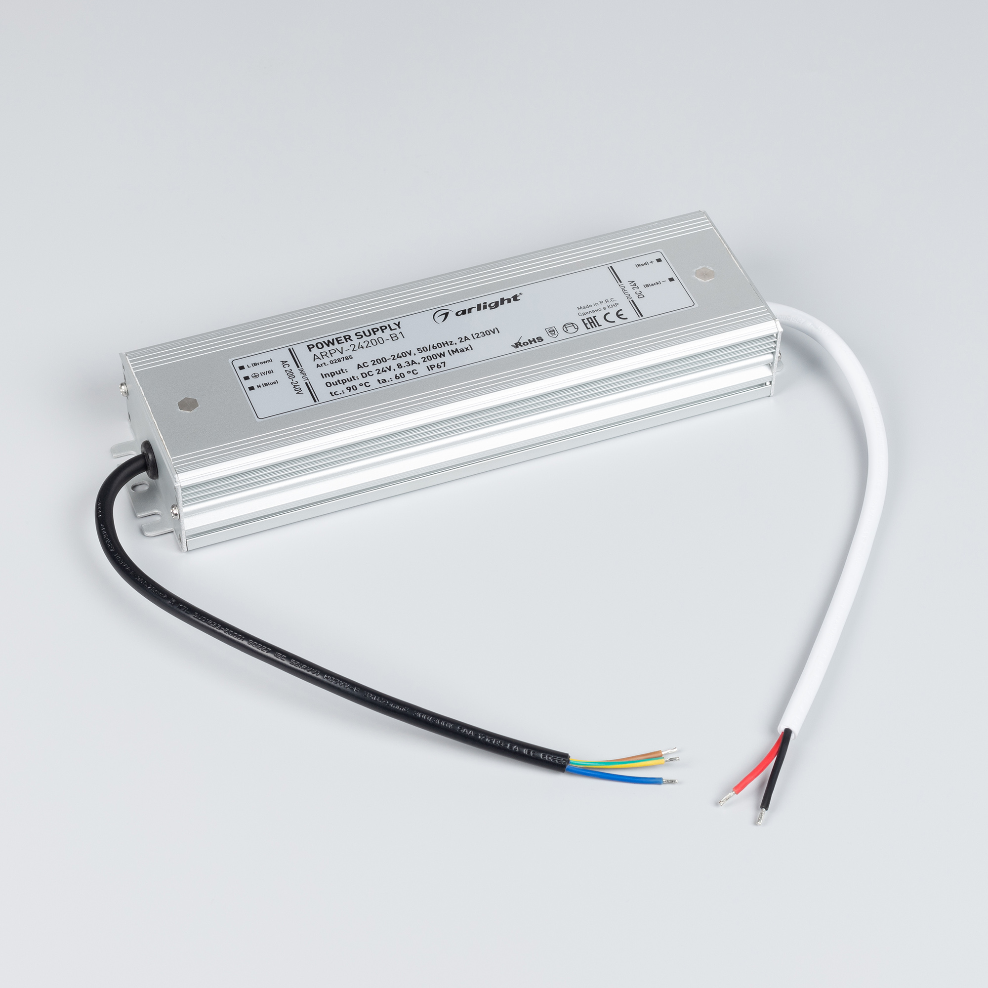 Источник напряжения с гальванической развязкой для светодиодных изделий. Входное напряжение 200-240 VAC. Выходные параметры: 24 В, 8.3 А, 200 Вт. Герметичный алюминиевый корпус IP 67. Рабочая температура -30…+50C⁰. Габаритные размеры длина 235 мм, ширина 67 мм, высота 34 мм. Совместим с диммерами с частотой ШИМ более 5кГц. Гарантийный срок 3 года.