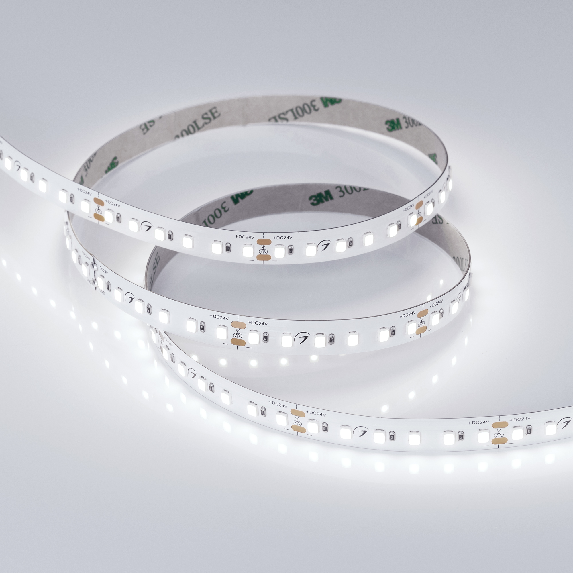 Светодиодная лента повышенной прочности TWIST серии A120. Напряжение питания 24 В, мощность 10 Вт/м, ширина 10 мм. Светодиоды SMD 2835, 120 шт/м, белого цвета свечения (6000K). Минимальный отрезок 50 мм (6 светодиодов). Высокий индекс цветопередачи обеспечивает точное восприятие цветов при освещении любых жилых и коммерческих интерьеров. Предназначена для декоративной подсветки, оформления рекламы, витрин. Использование печатной платы высокой механической прочности позволяет перекручивать ленту для удобства монтажа на поверхностях с различными углами изгибов.
