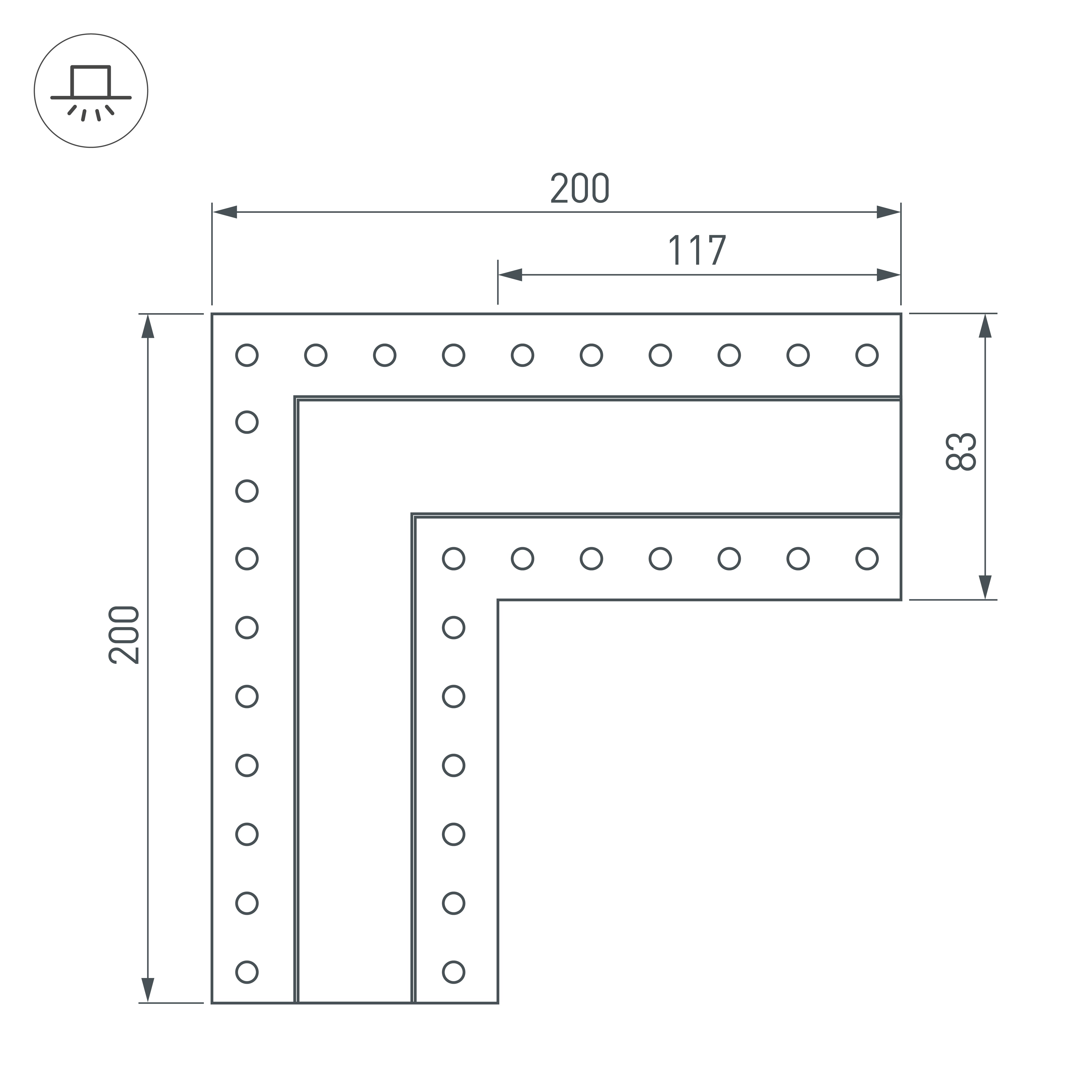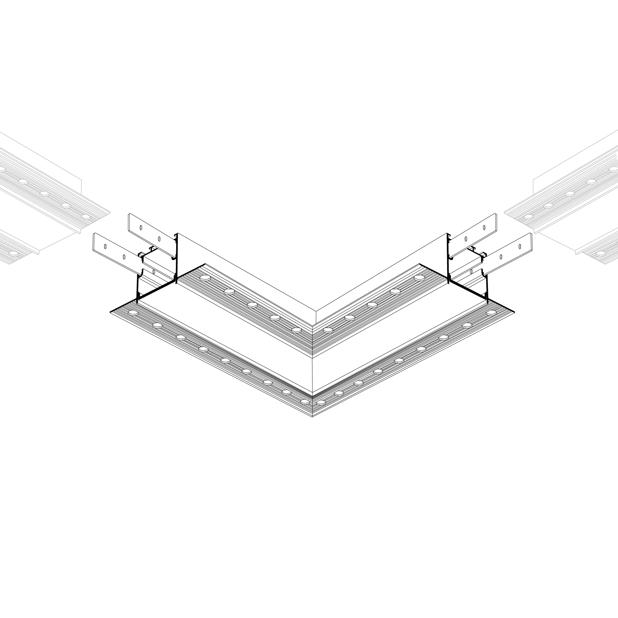 Прямой угол в сборе со скрытым фланцем под строительную отделку для соединения двух профилей SL-LINIA32-FANTOM под прямым углом 90° в одной плоскости в комплекте с матовым экраном и соединителями. Экран образует линию на плоскости. Применятся при изготовлении светильников сложной геометрии.