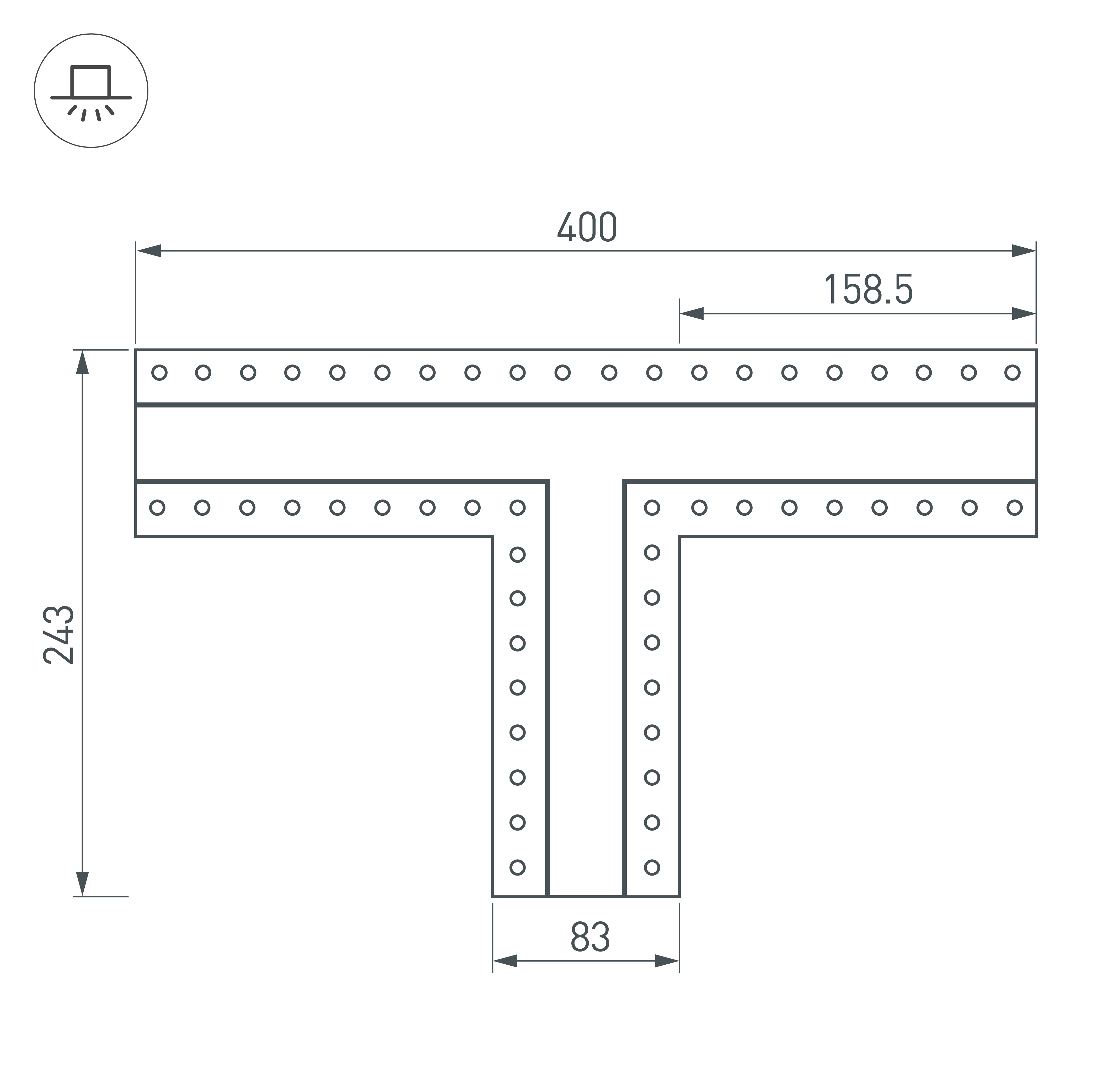 Т-образный угол в сборе со скрытым фланцем под строительную отделку для соединения трех профилей SL-LINIA32-FANTOM под прямыми углами 90° в одной плоскости в комплекте с матовым экраном и соединителями. Экран образует Т-образную фигуру на плоскости. Применятся при изготовлении светильников сложной геометрии. Длина внешней стороны угла 243мм. Цена за комплект.