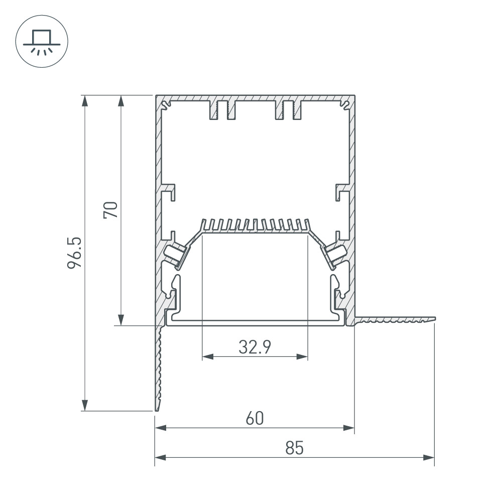 Внутренний прямой угол в сборе со скрытым фланцем под строительную отделку для соединения двух профилей SL-LINIA55-FANTOM-EDGE под прямым углом 90° в разных плоскостях в комплекте с матовым экраном и соединителями. Экран образует линию внутри угла. Применятся при изготовлении светильников сложной геометрии.