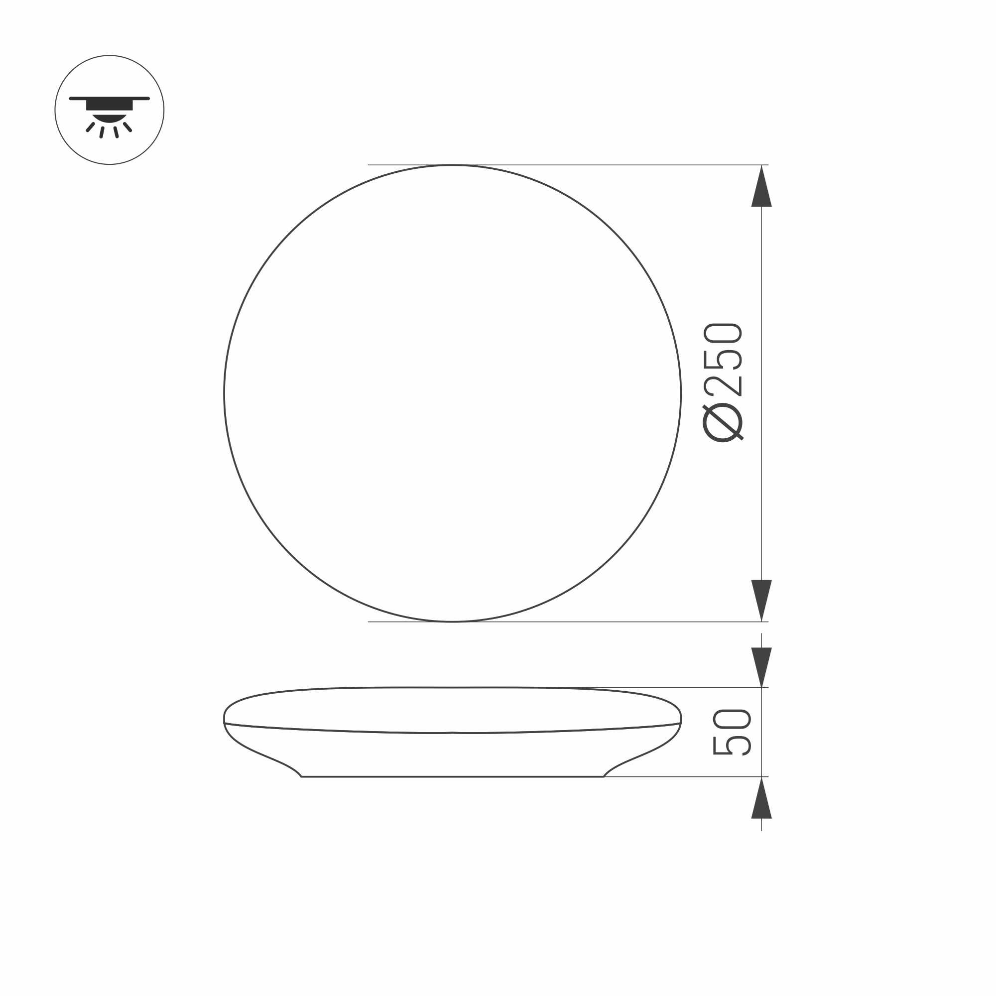 Накладной светильник 12Вт с микроволновым датчиком движения, белый круглый корпус (IK10). Цвет БЕЛЫЙ ТЕПЛЫЙ 3000К, св.поток 1150-1200лм, CRI(Ra)>80, угол 180°. Размер Ф250x50мм. Материал рассеивателя PMMA. Материал корпуса ABS пластик. Питание AC220-240V, 12Вт, драйвер встроенный (72V, 160mA). Диммирование по TRIAC.