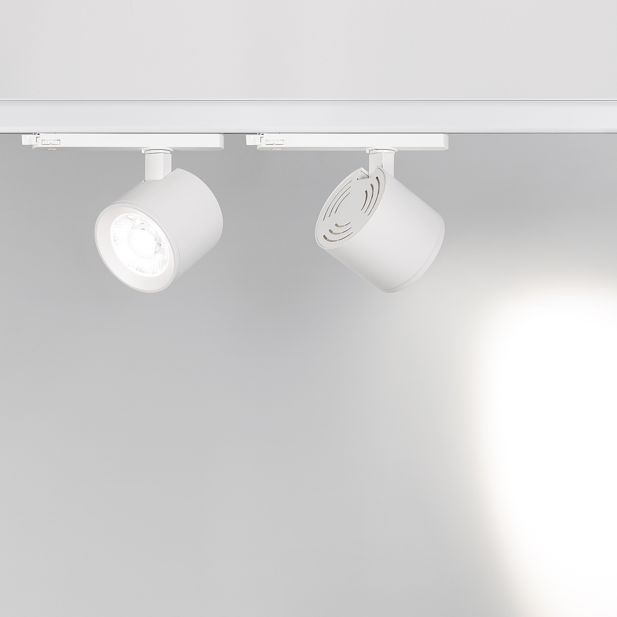 Подвесной одинарный светильник для треков/шин LGD-NIKA-4TR-R100-20W Day4000 (WH, 24 deg, 230V) мощностью 20 Вт с дневным белым цветом свечения (4000 К) и индексом цветопередачи CRI>90 для создания локального направленного освещения в жилых, коммерческих или торговых помещениях. Светильник с узким углом излучения 24° и световым потоком 1990 лм обеспечивает качественное освещение и высокую световую отдачу. Стильный и лаконичный корпус из алюминия окрашен в белый цвет высококачественной порошковой краской. Корпус светильника поворачивается вокруг своей оси, что позволяет быстро менять направление светового луча. Светильник легко устанавливается на трехфазный трек серии LGD и подключается к сети переменного тока 230 В с помощью встроенного драйвера. Дополнительные аксессуары приобретаются отдельно.