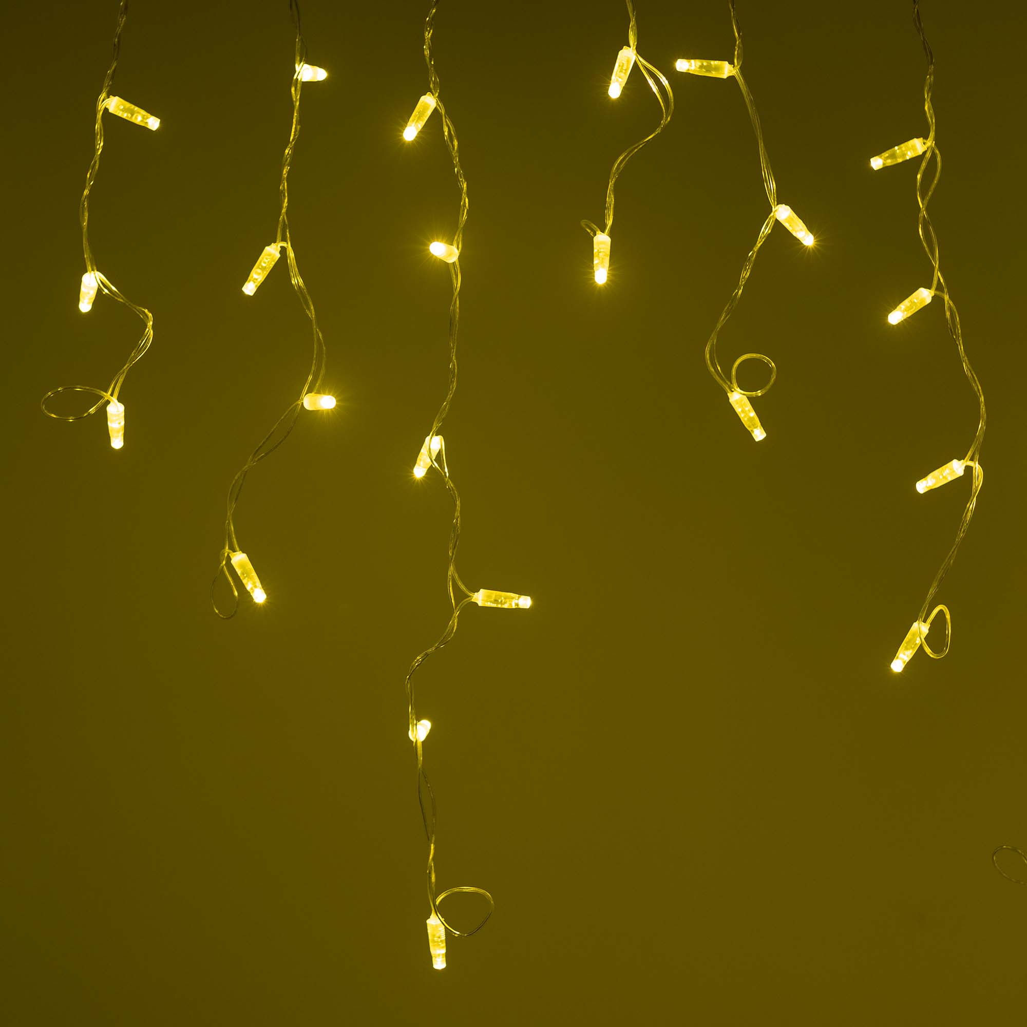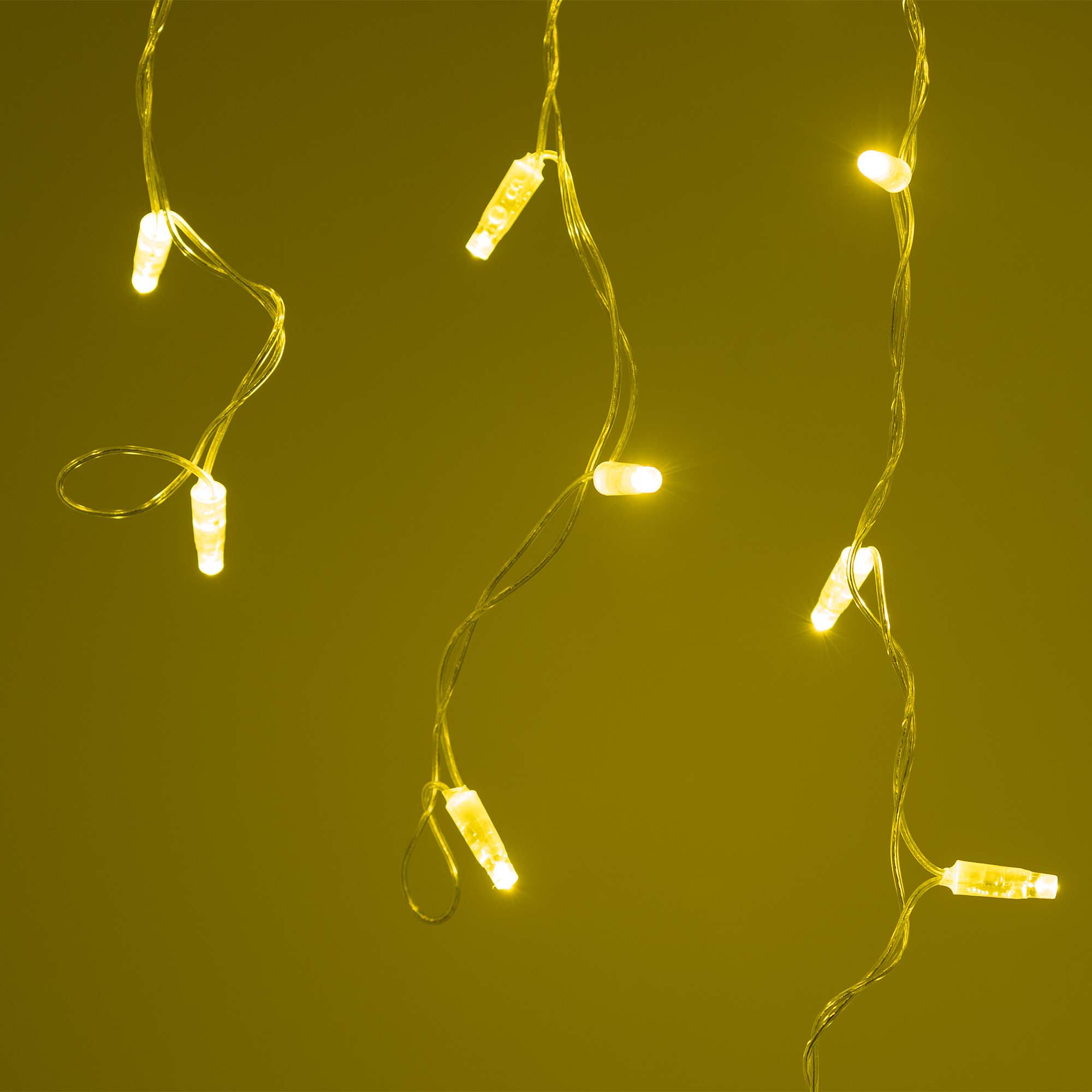 Универсальная светодиодная гирлянда "БАХРОМА" серии Classic отлично подходит для украшения и создания праздничной атмосферы как внутри помещений, так и снаружи (степень пылевлагозащиты IP65 позволяет размещать гирлянду на улице под навесом). Имея размеры 2400 x 600 мм, она может использоваться для оформления небольших и средних площадей. Универсальные соединительные разъемы позволяют наращивать длину до 50 м без использования дополнительных аксессуаров. Прозрачная вогнутая линза и эффект непрерывного свечения обеспечивают яркое, равномерное освещение, выделяя украшаемые объекты. Золотой свет помогает создать необходимую атмосферу для декоративного объекта. Прозрачный провод изготовлен из ПВХ. Аксессуары для подключения гирлянды к сети приобретаются отдельно.