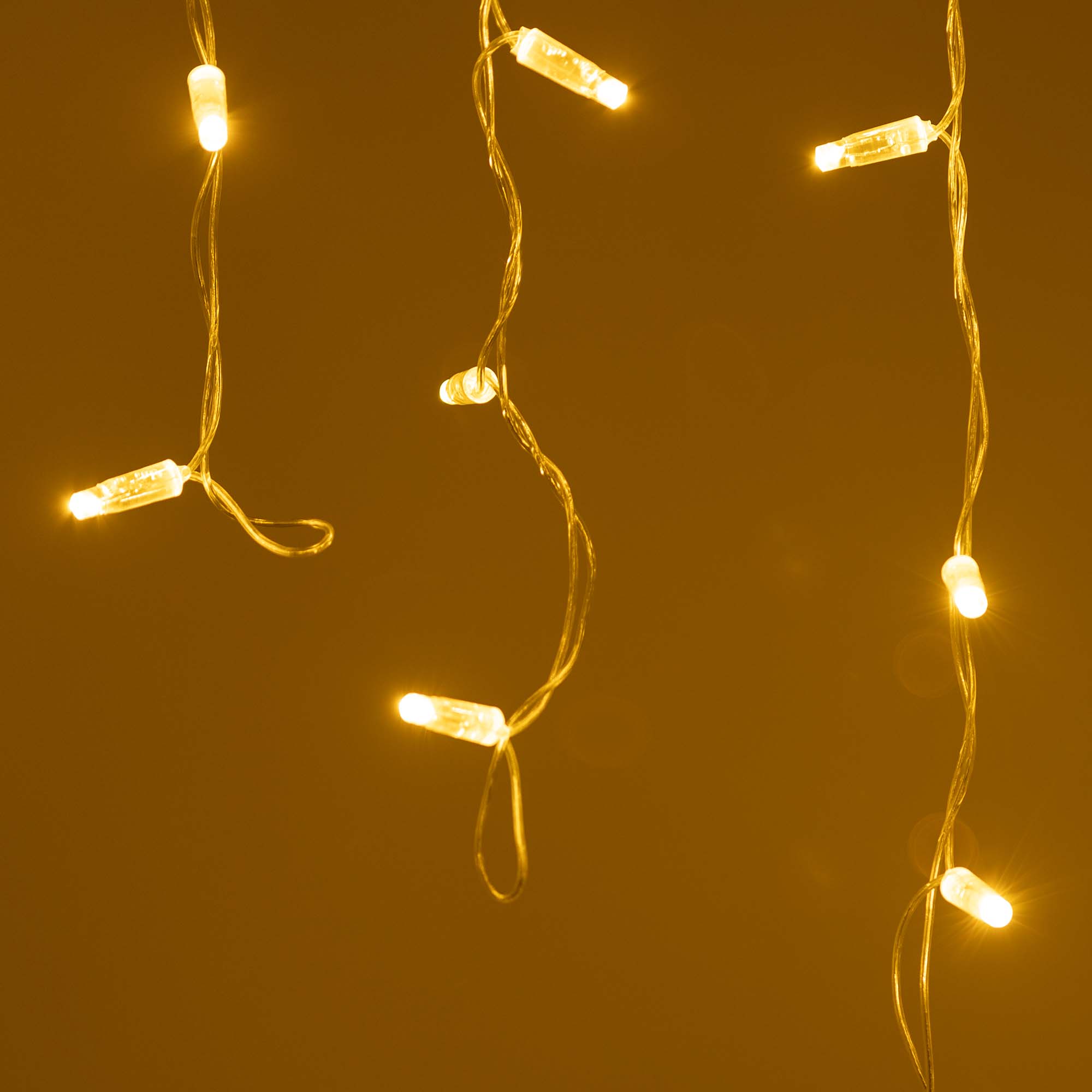 Светодиодная бахрома Classic. Размер 2400 мм (длина 2400 мм, по длине 24 нити высотой 200/600 мм). Количество светодиодов 88 шт размером 7 мм. Основной цвет свечения ТЕПЛЫЙ БЕЛЫЙ (3000 К), эффект мерцания редких точек (ТЕПЛЫЙ БЕЛЫЙ 3000К) с резким световым рисунком (прозрачная вогнутая линза), соотношение светодиодов: 66 теплых постоянного свечения / 12 теплых с мерцанием. Провод прозрачный, ПВХ. Питание 230 В, Мощность 6 Вт, защита IP65, применение на улице под навесом. Аксессуары для подключения приобретаются отдельно.