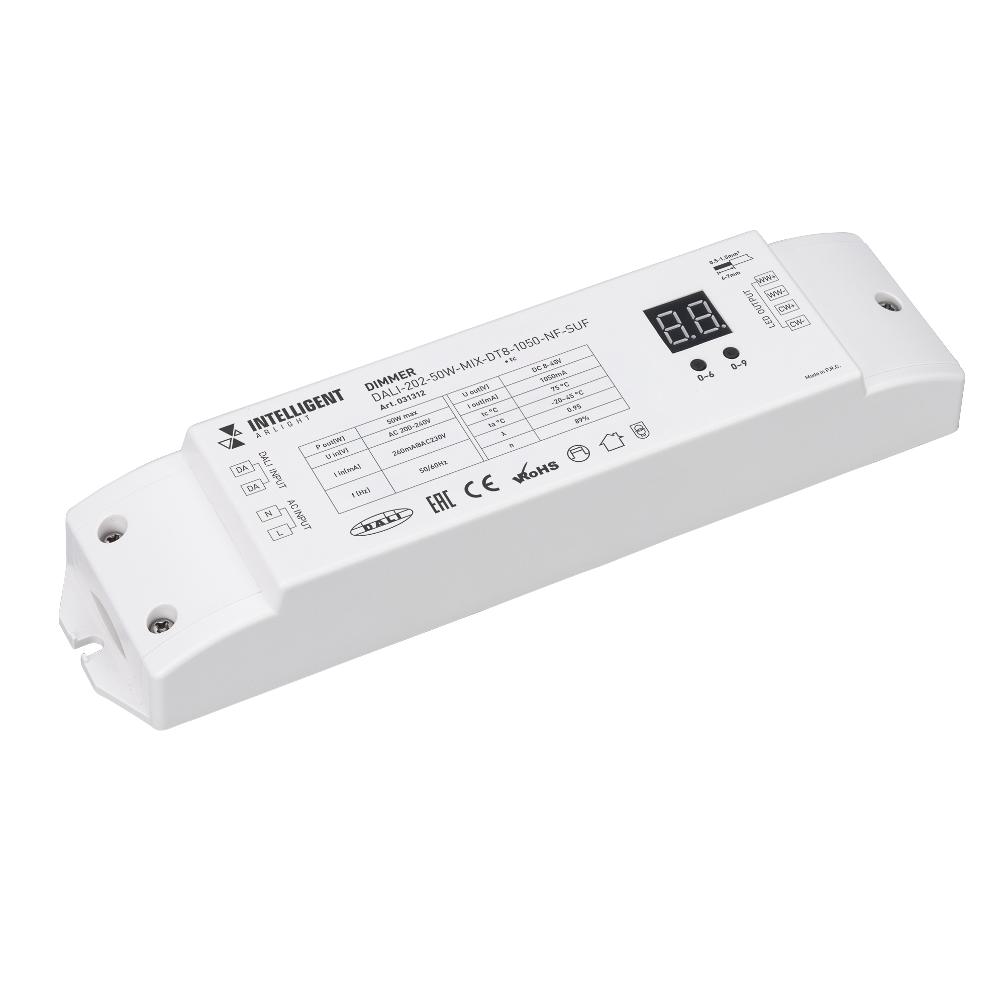 INTELLIGENT ARLIGHT Диммер DALI-202-50W-MIX-DT8-1050-NF-SUF (230V, 1000mА) (IARL, Пластик)